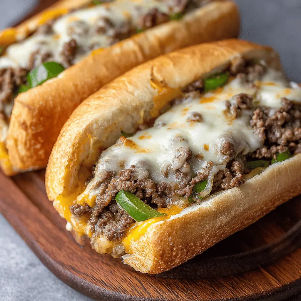 When whipping up your 30-Minute Ground Beef Philly Cheesesteaks, remember that preparation is key. Have all your ingredients chopped and ready before you start cooking. This not only speeds up the process but also ensures you don’t miss a step! Choosing the right cheese is crucial too—provolone or Cheez Whiz are classic choices that melt beautifully.