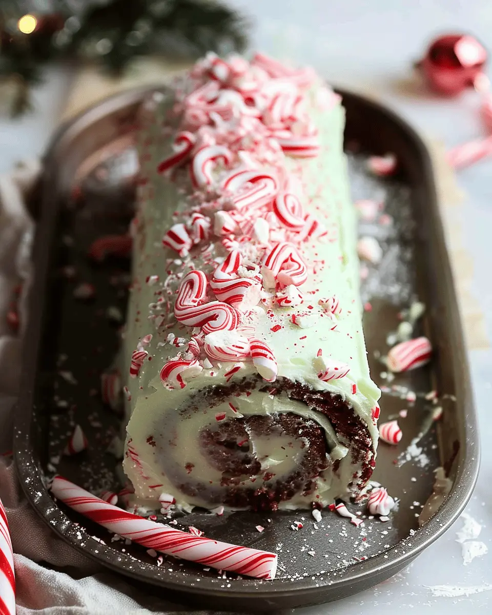 Absolutely! One of the beauties of the best Christmas peppermint roll cake is its versatility in meal prep. You can bake the cake a day or two in advance. Just be sure to wrap it tightly in plastic wrap once it has cooled—this keeps it moist. When you’re ready to serve, simply fill and frost it just before your gathering. If you’d like to make it even earlier, you can freeze the rolled cake. Just remember to wrap it in a freezer-safe container to maintain its freshness.