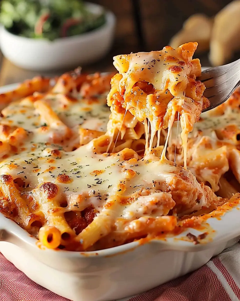 Indulge in a creamy, cheesy baked ziti that warms the heart and satisfies the taste buds.