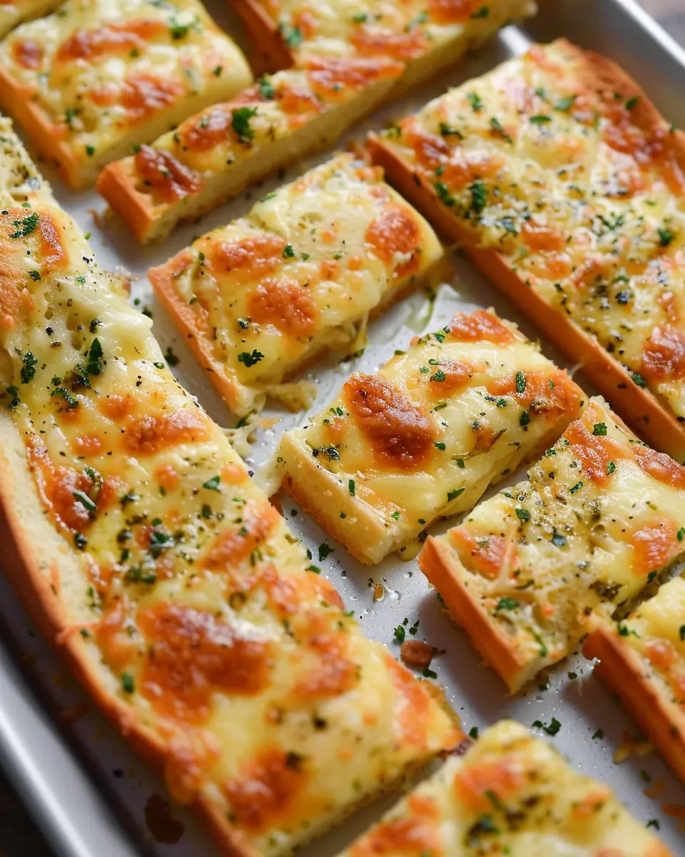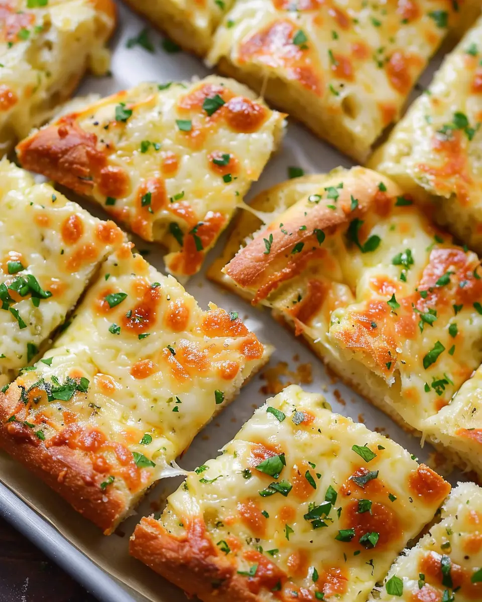 Experience the ultimate indulgence with this cheesy garlic bread that delivers a flavor explosion in every bite!