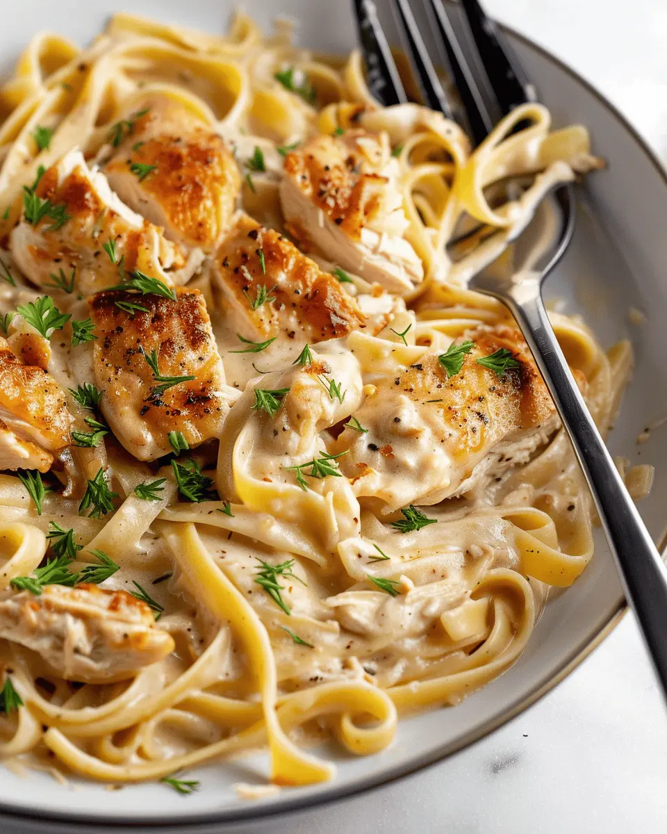 - Pasta meets sauce: Add the drained pasta and cooked chicken to the skillet. Toss everything together until the pasta is fully coated in that luscious creamy sauce.