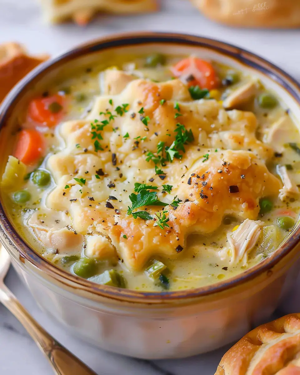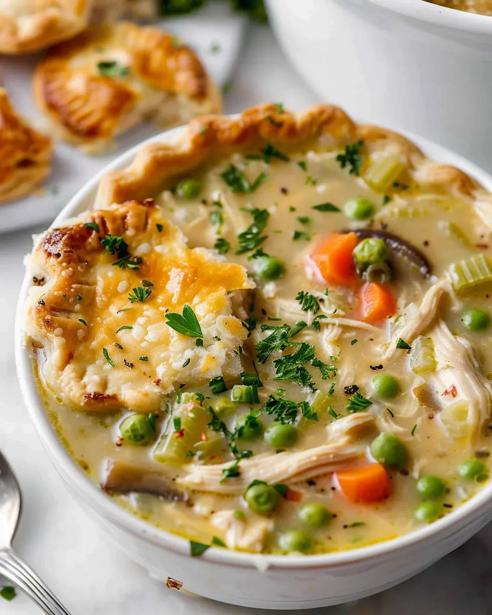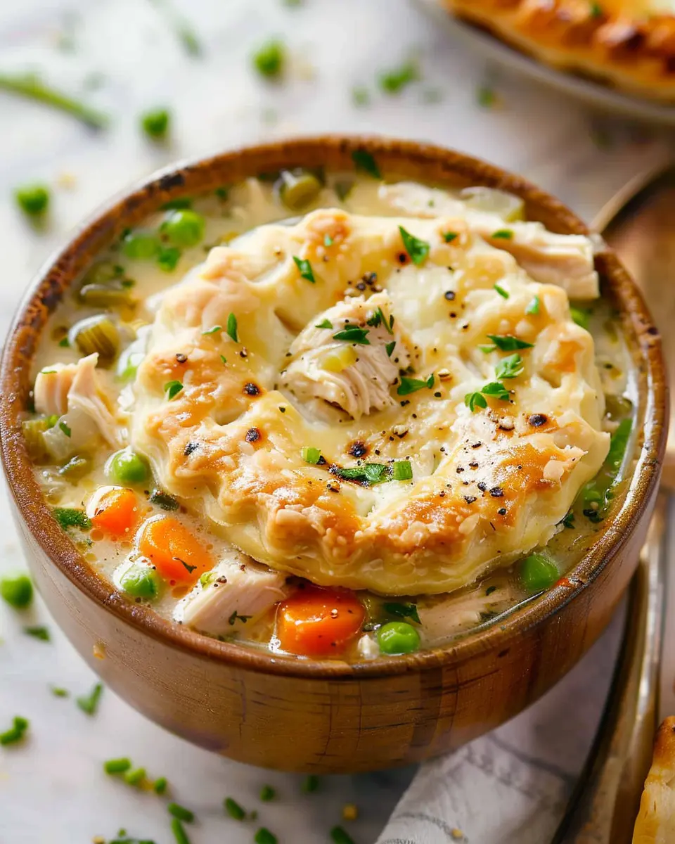 To create a warm and inviting presentation for your chicken pot pie soup, consider serving it in rustic bowls or colorful mugs that add a touch of personality. Garnishing with fresh herbs like parsley or thyme can elevate the visual appeal, making it look as comforting as it tastes. For an extra dash of charm, sprinkle some buttery cracker crumbs or store-bought pastry bits on top, reminiscent of traditional pot pie crusts. This not only enhances the dish aesthetically but also brings a delightful crunch to each spoonful.