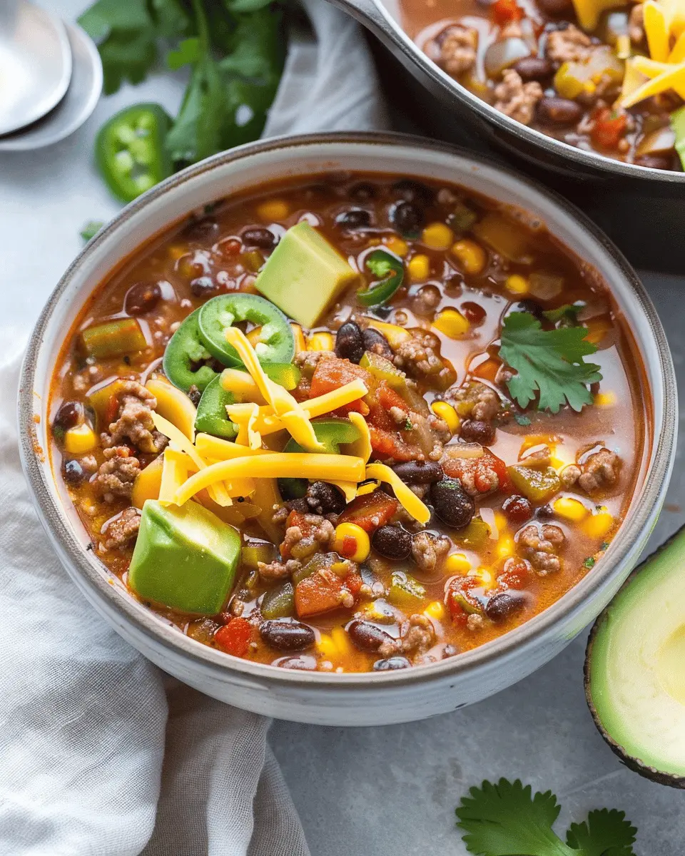 Exploring variations of classic beef taco soup allows you to cater to different preferences, ensuring that everyone at the table finds a bowl that suits their taste. Here are two fantastic twists you can try!