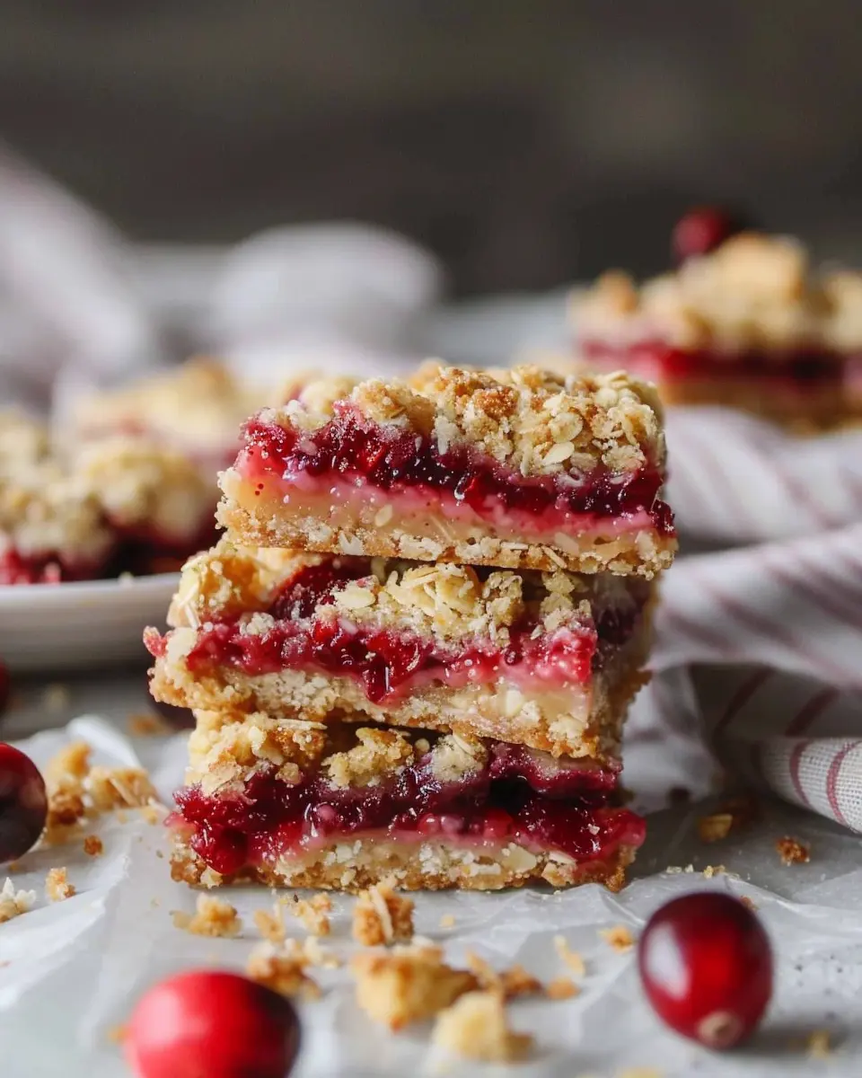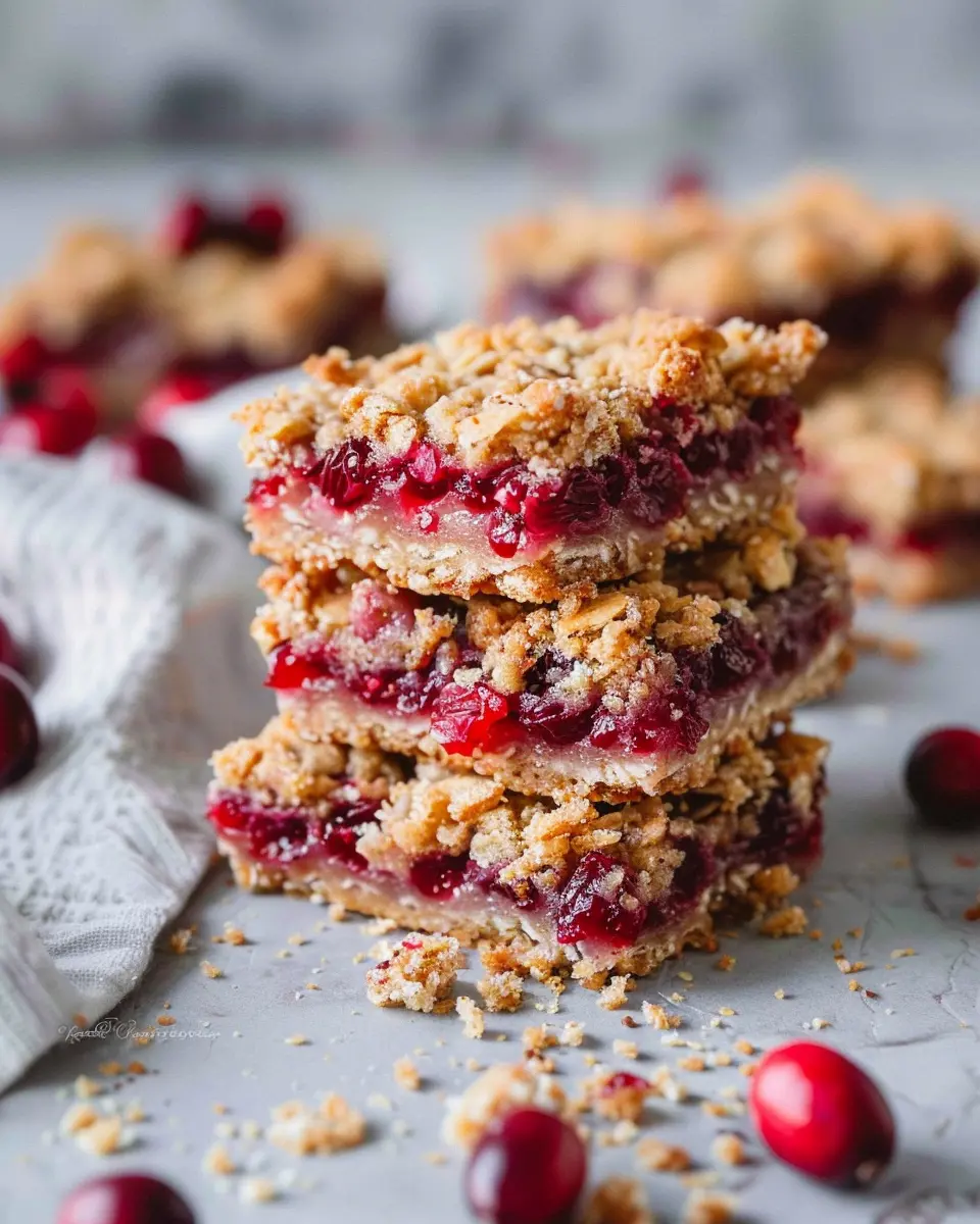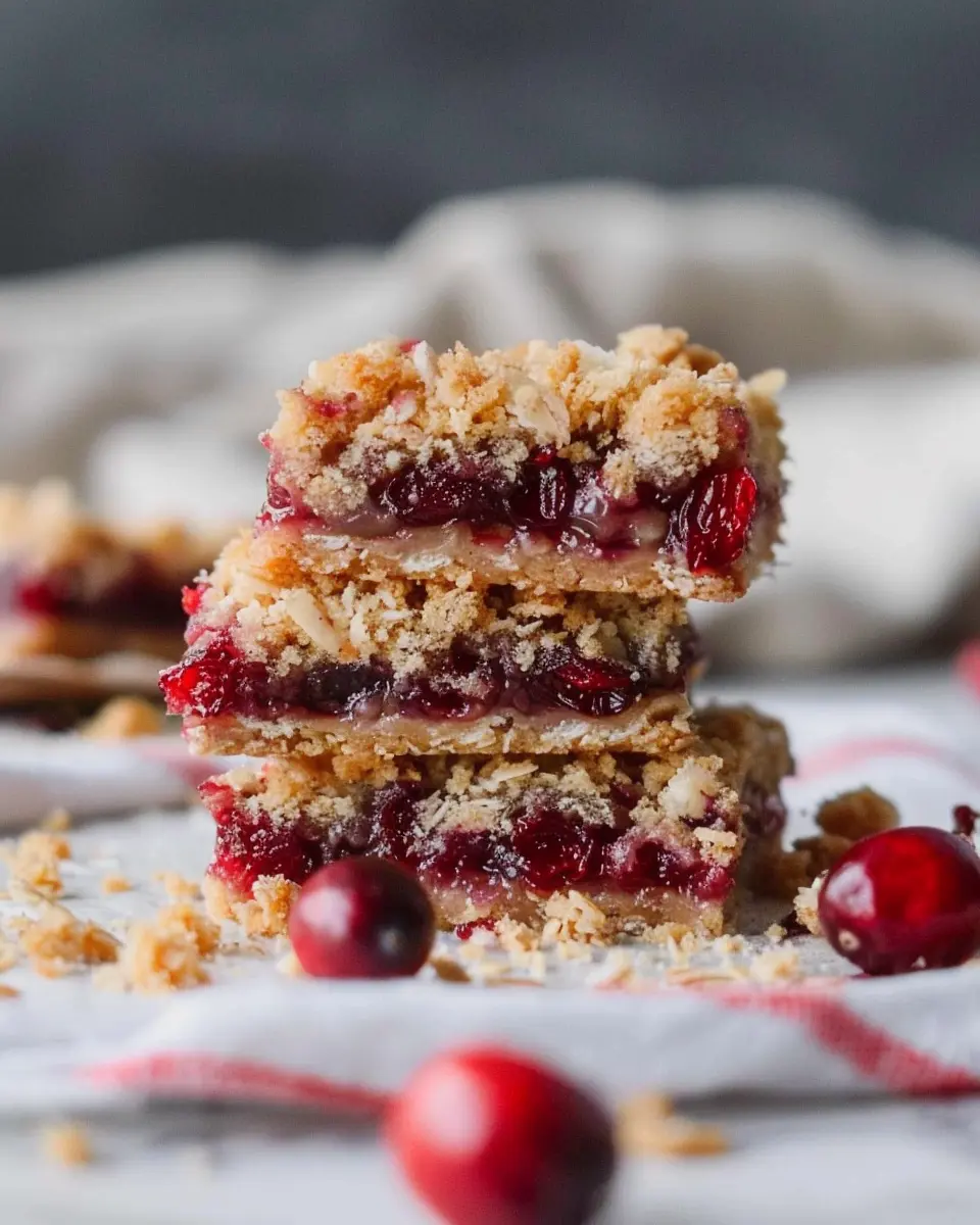 Enjoy these delightful cranberry crumble bars, a perfect blend of tart cranberries and a buttery crumble topping.