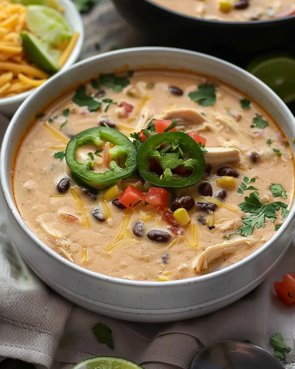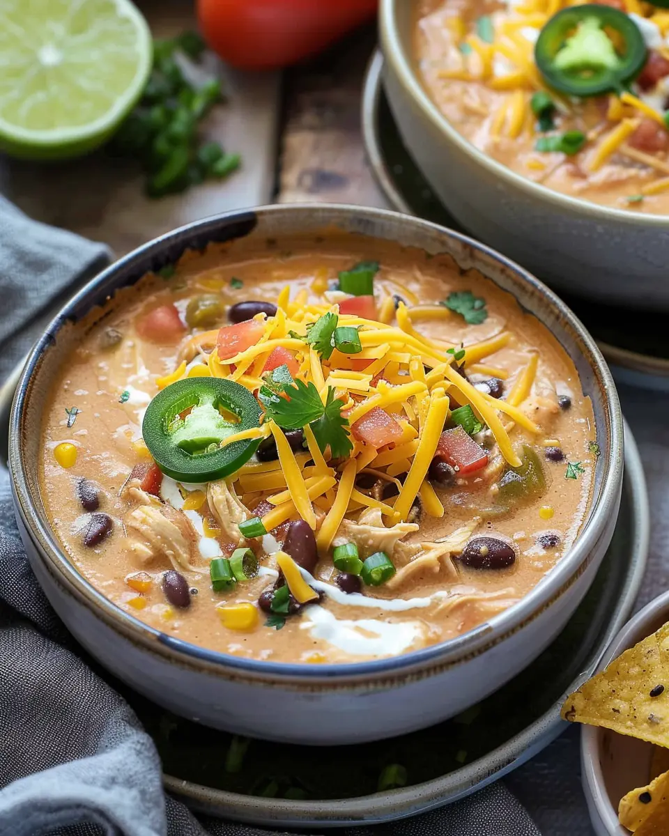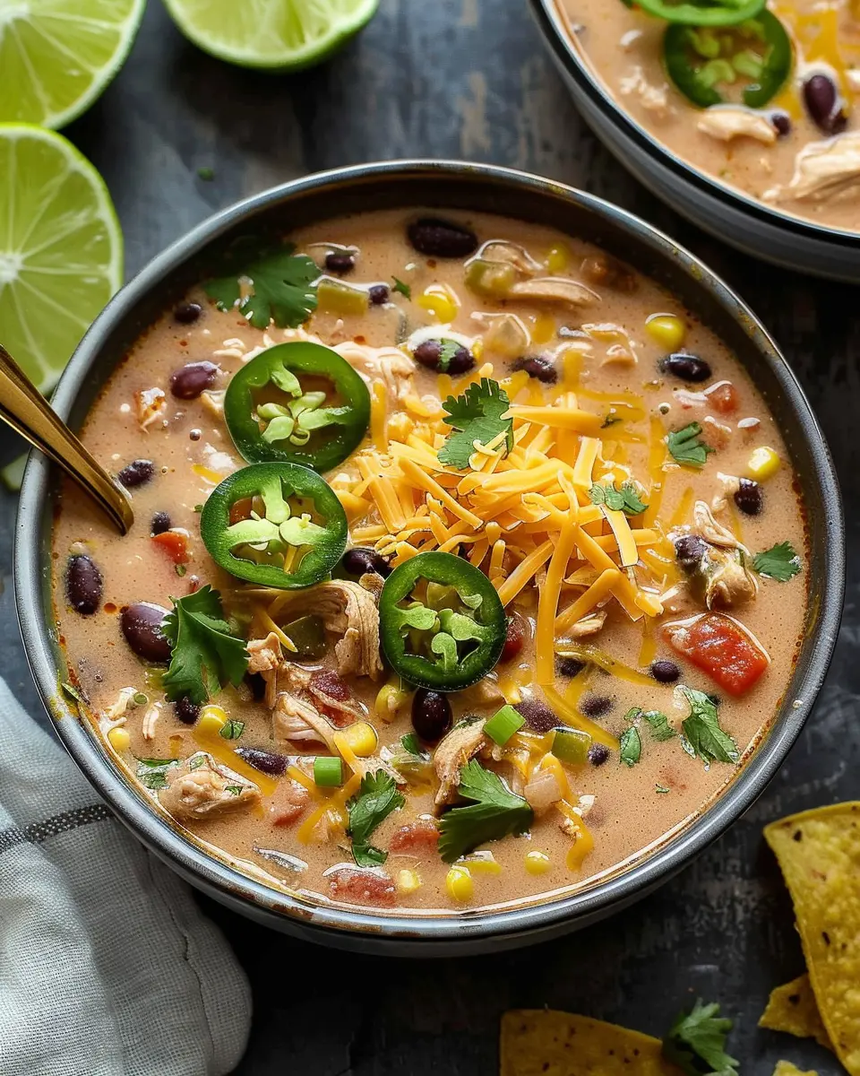 A comforting and creamy chicken taco soup that’s easy to prepare and full of flavor.