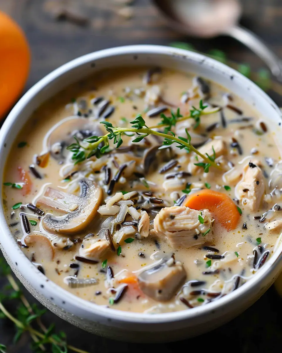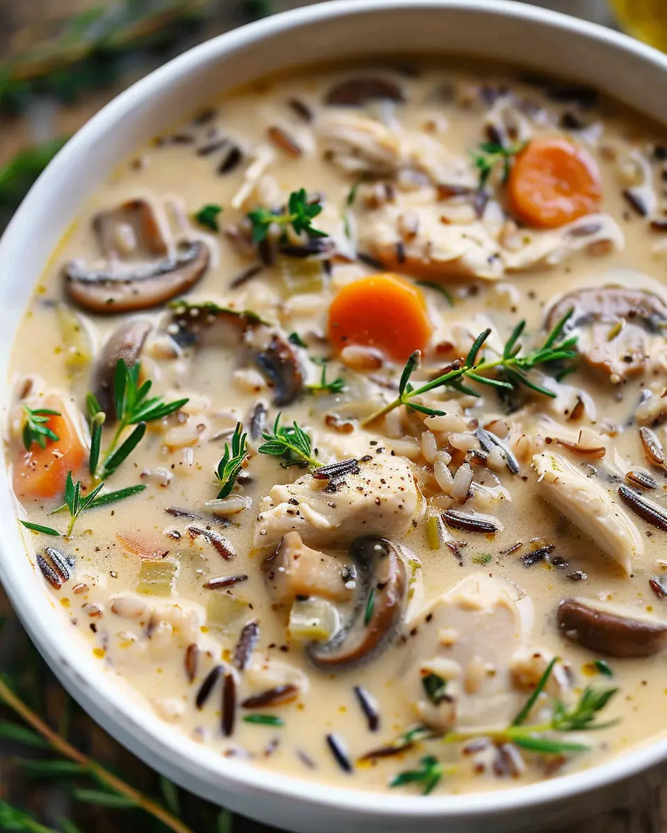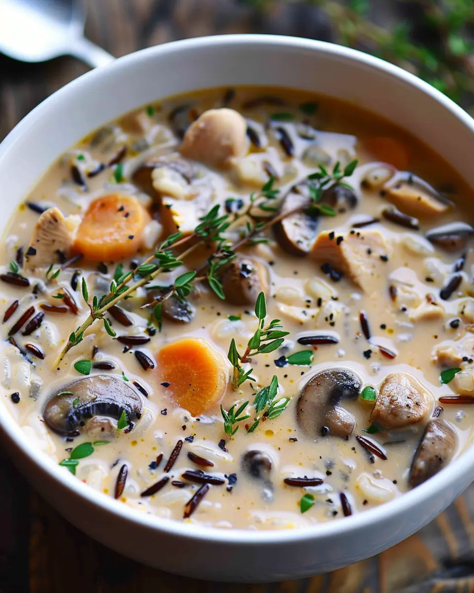 Keywords: Creamy Mushroom Chicken and Wild Rice Soup