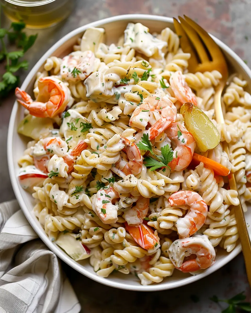 One of the main attractions of creamy seafood pasta salad is its ability to be enjoyed both as a light meal and as a crowd-pleasing side dish. Perfect for potlucks, summer picnics, or simple weeknight dinners, it brings a hint of coastal charm to any table.