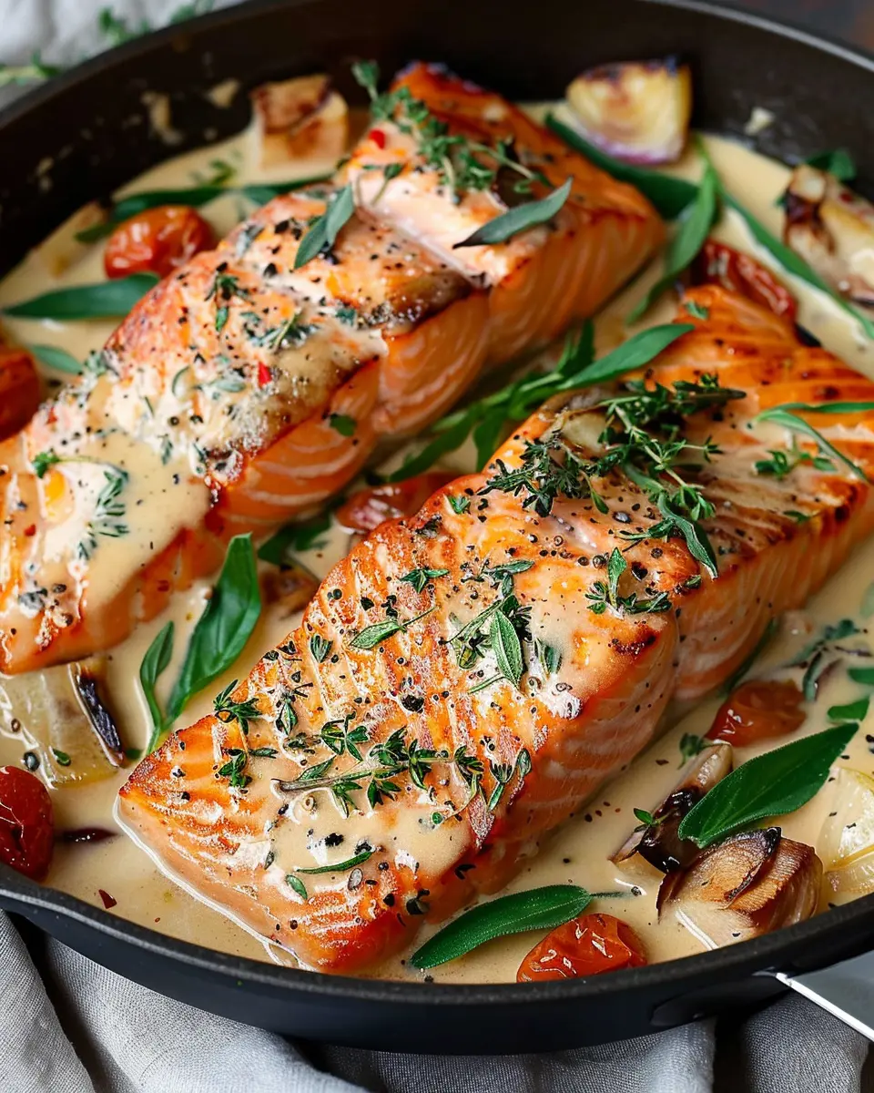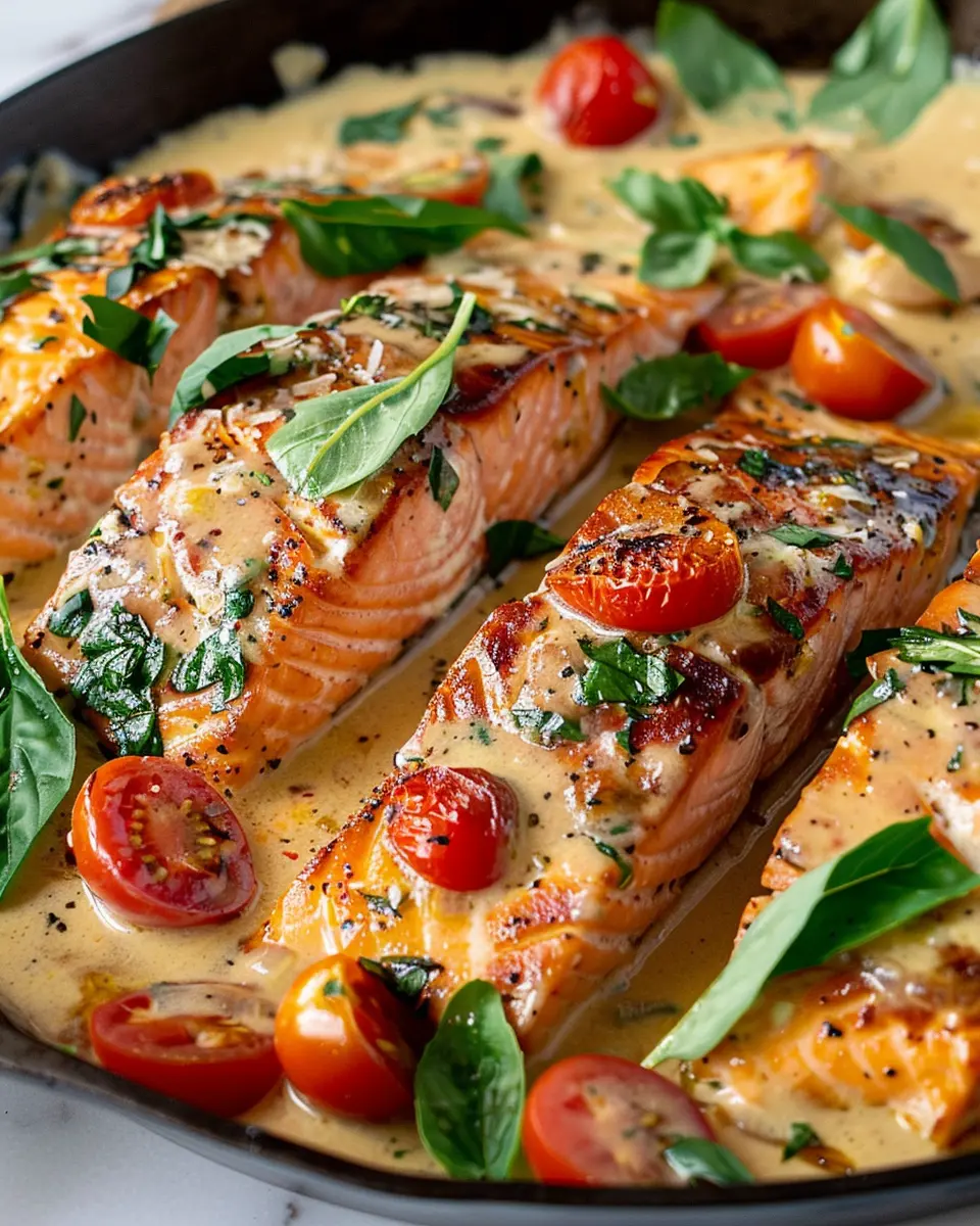 PrintCreamy Tuscan Salmon with Turkey Bacon: A Deliciously Easy Dish