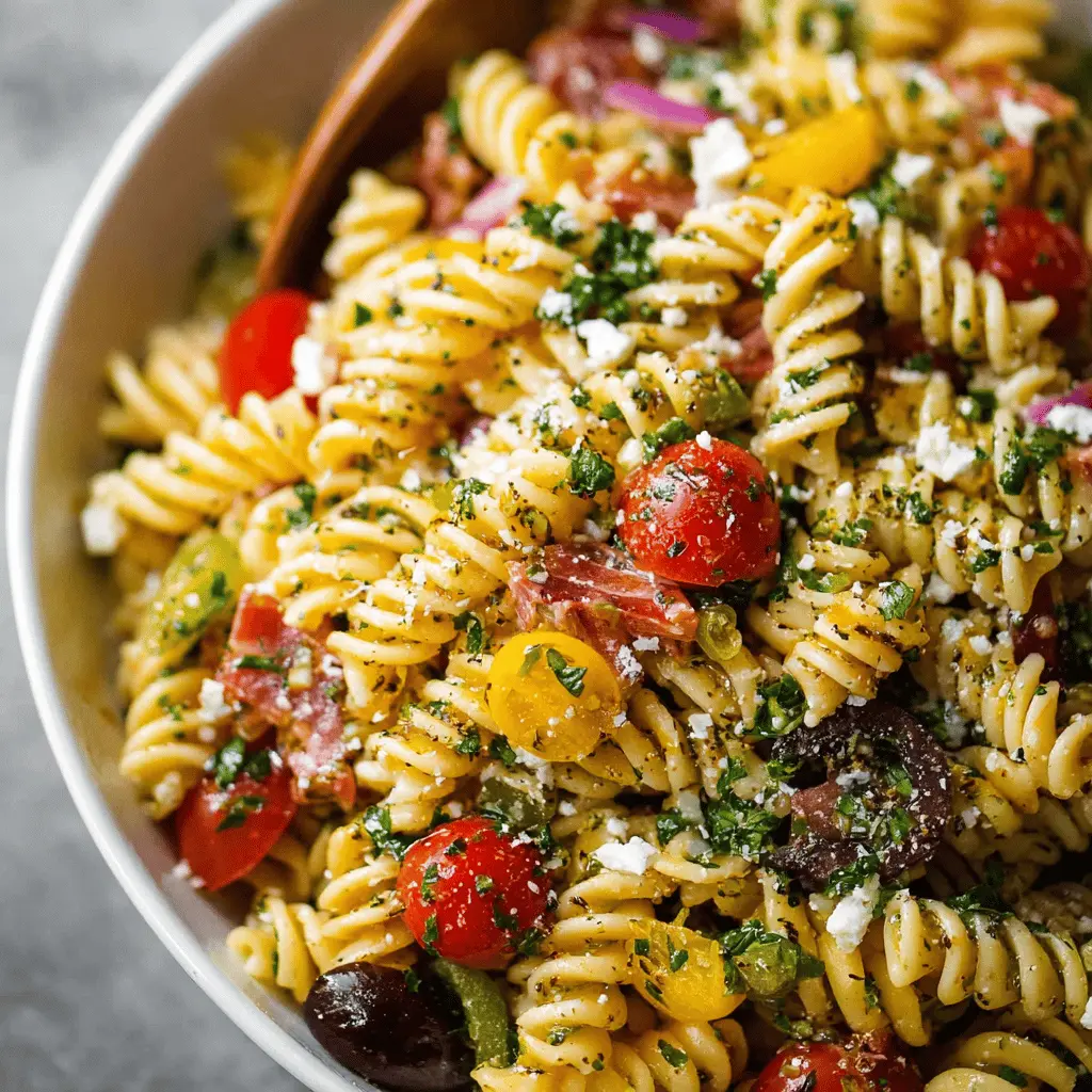 Remember, the key to a great pasta salad is allowing it to marinate in the fridge for at least an hour before serving. This waiting period works wonders, letting the flavors meld beautifully! Enjoy your summer gatherings with this refreshing dish!