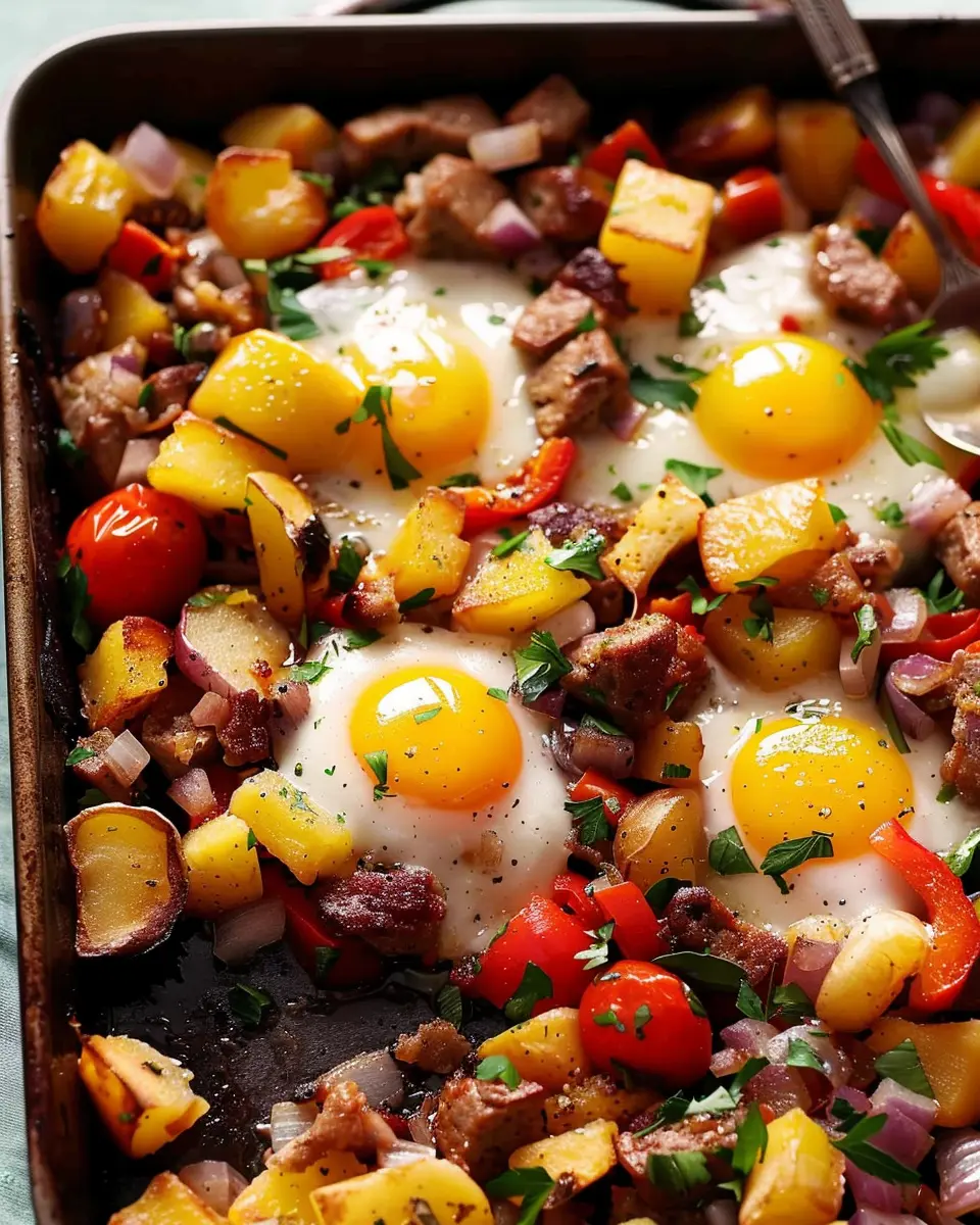 If you prefer a more hands-on approach, you could crack the eggs directly on top of the hash. Adjust the number of eggs based on your serving size and preference—2 to 4 eggs work well for a single tray.