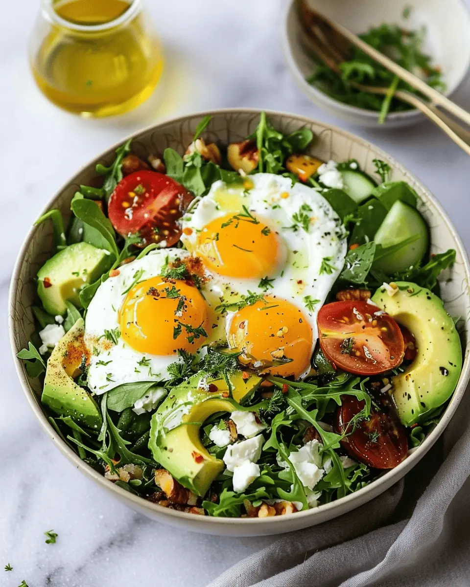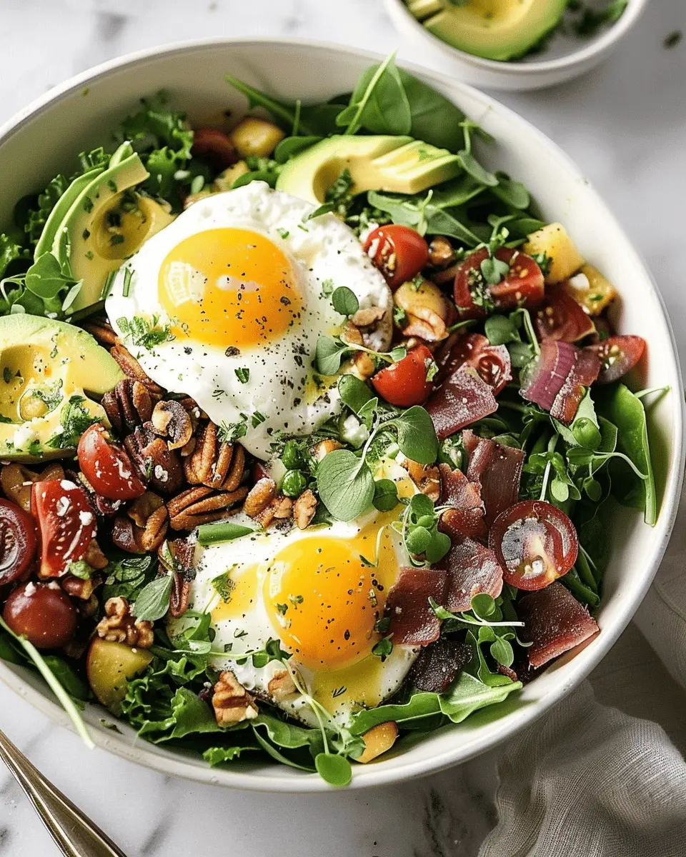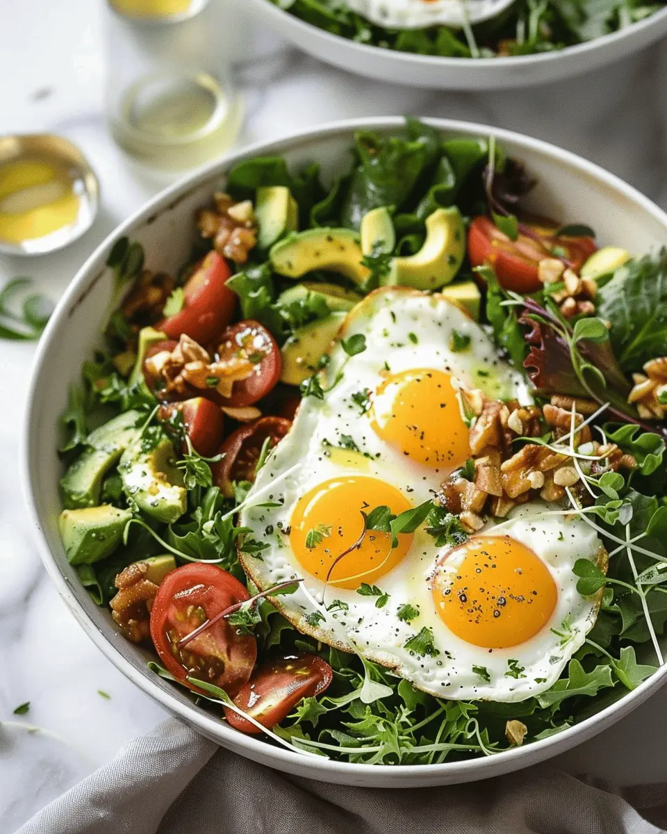 For those who love a protein boost in their morning routine, adding some tasty toppings can transform your easy breakfast salad. Here are a few suggestions: