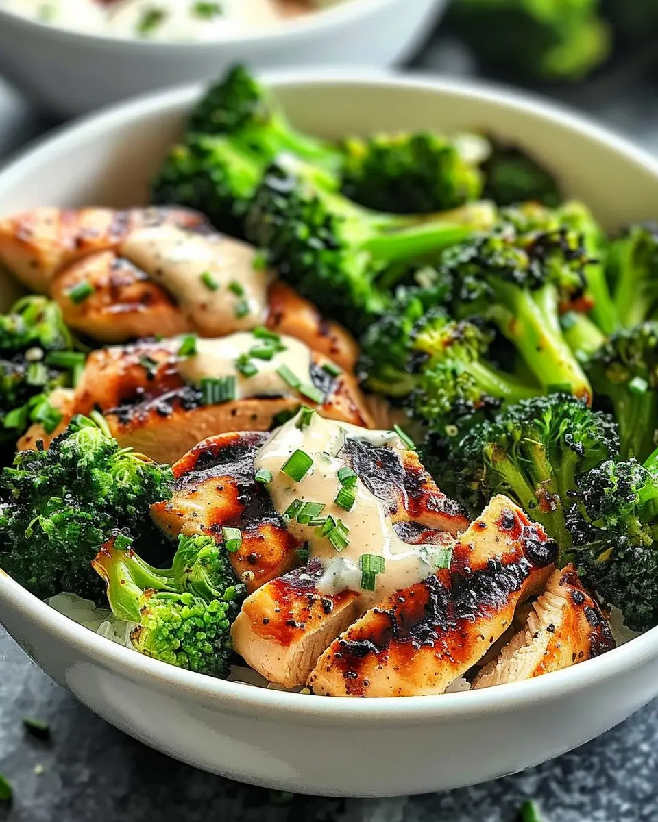 PrintGrilled Chicken Bowls: Delicious Recipe with Broccoli & Creamy Garlic Sauce