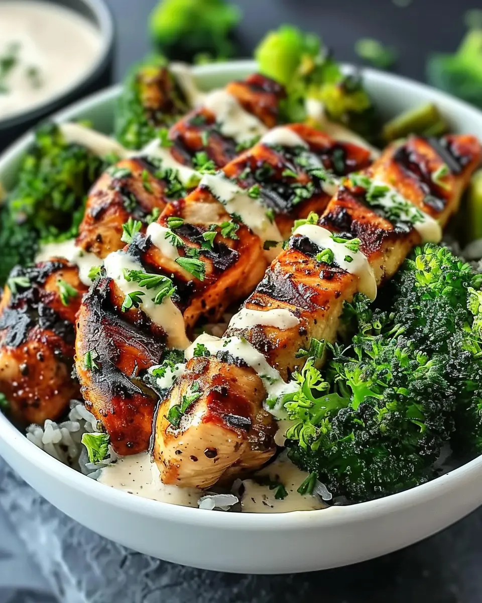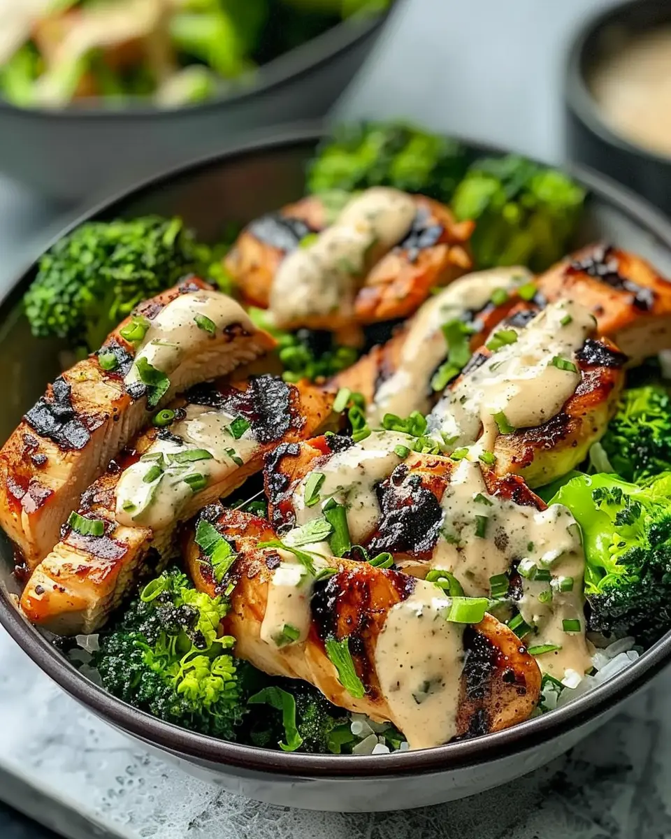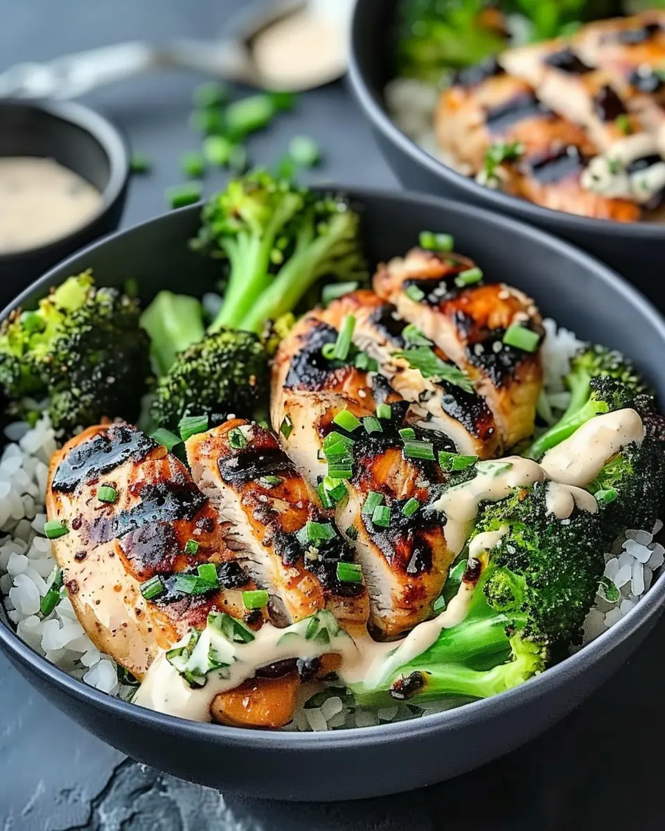 PrintGrilled Chicken Broccoli Bowls: Easy Recipe with Creamy Garlic Sauce