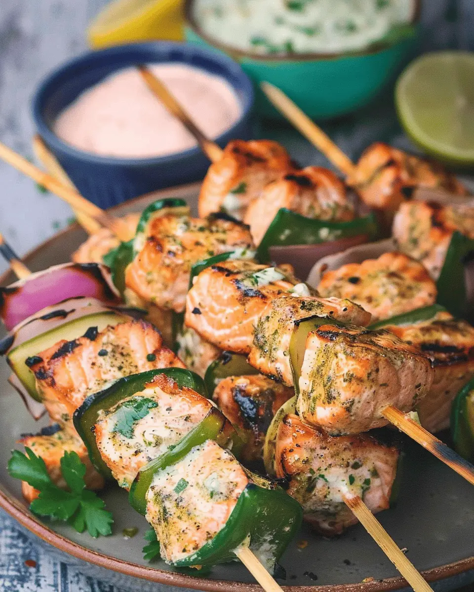 Don’t overlook the sauces! They can take your Grilled Salmon Kabobs to the next level. Here are a few ideas: