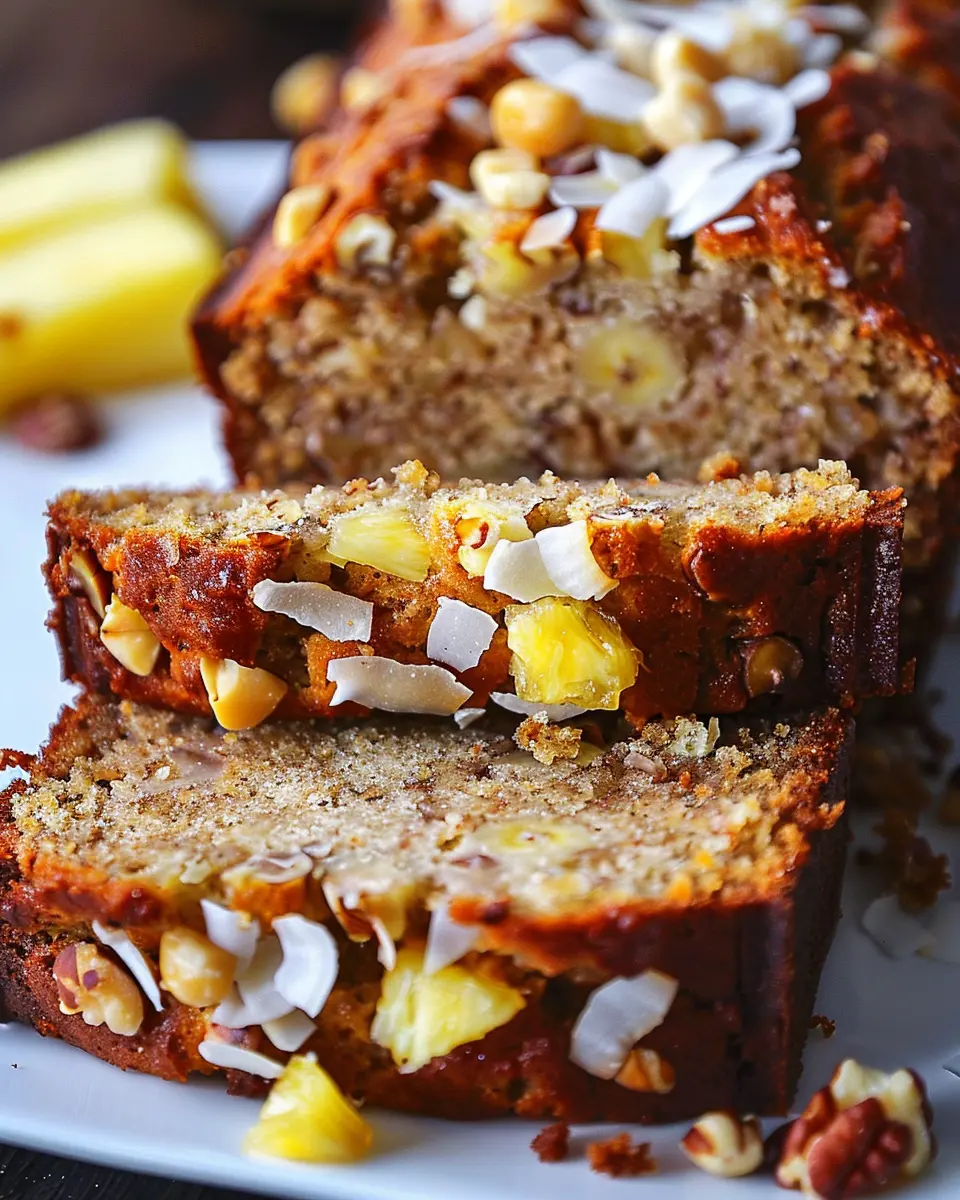 Hawaiian Banana Bread with Pineapple, Coconut, Macadamia Nuts