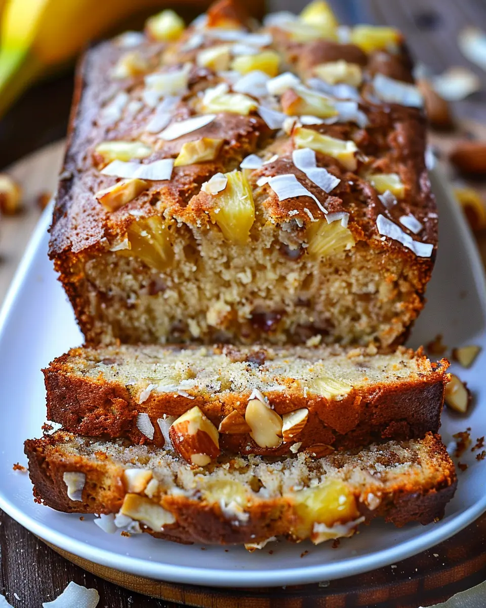 Hawaiian Banana Bread with Pineapple, Coconut, Macadamia Nuts Bliss