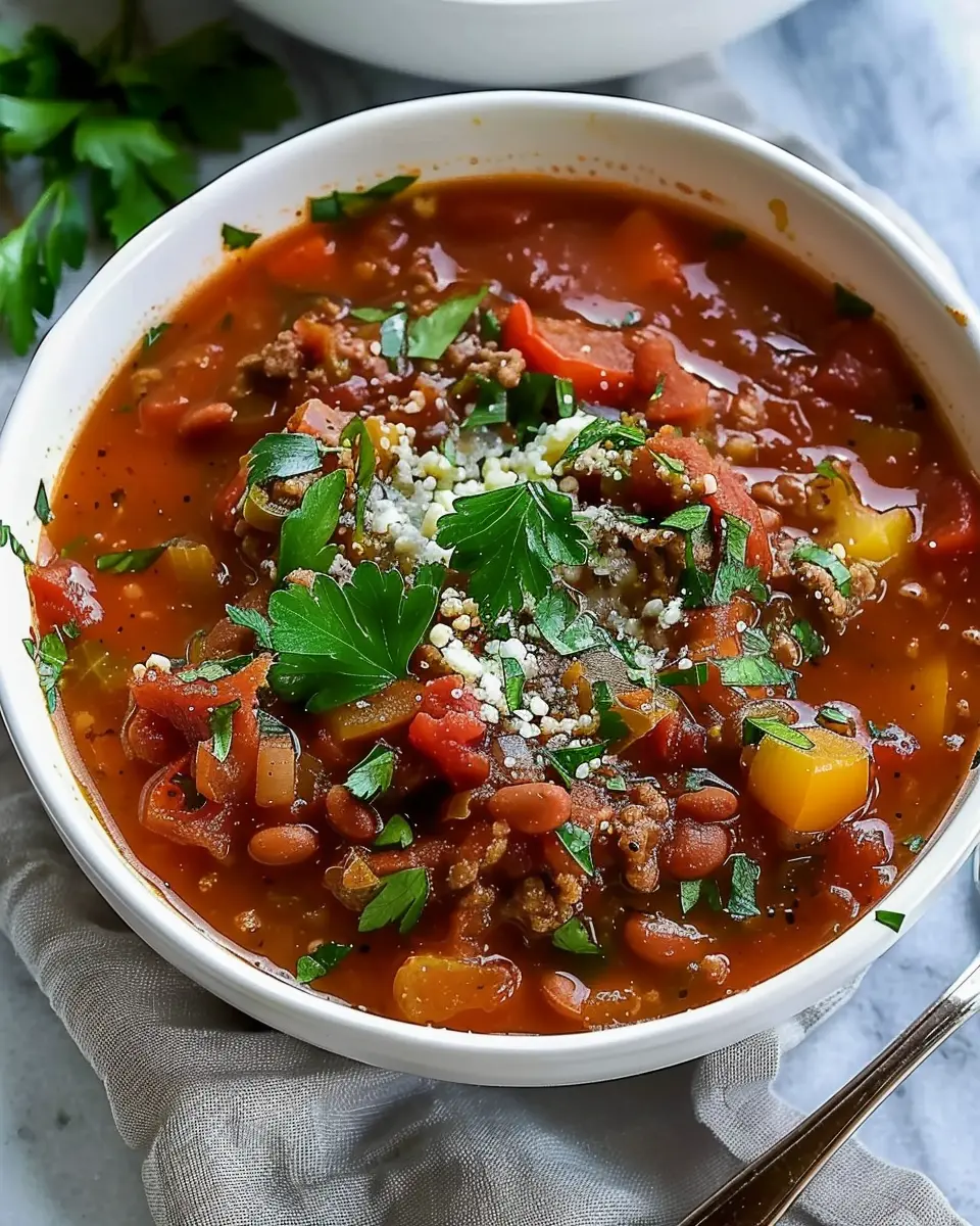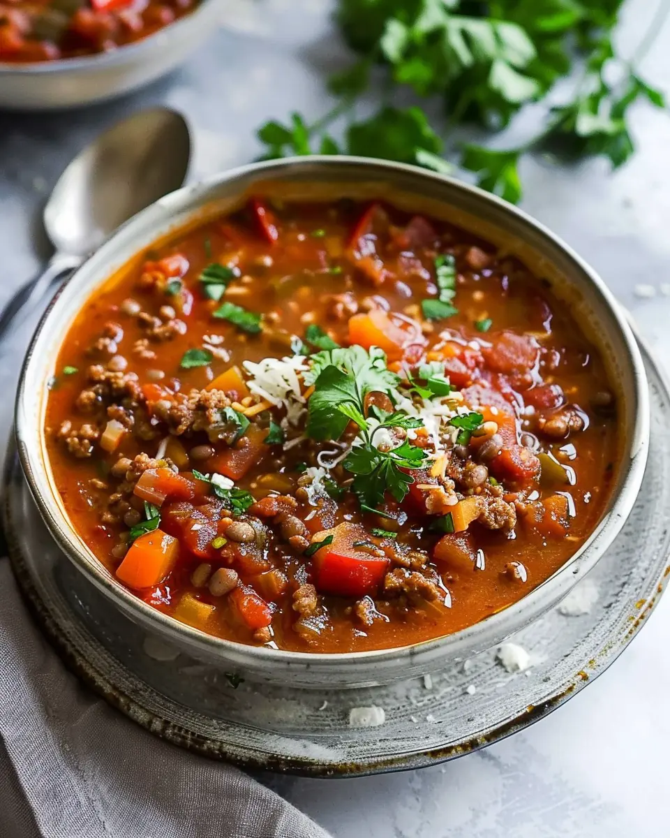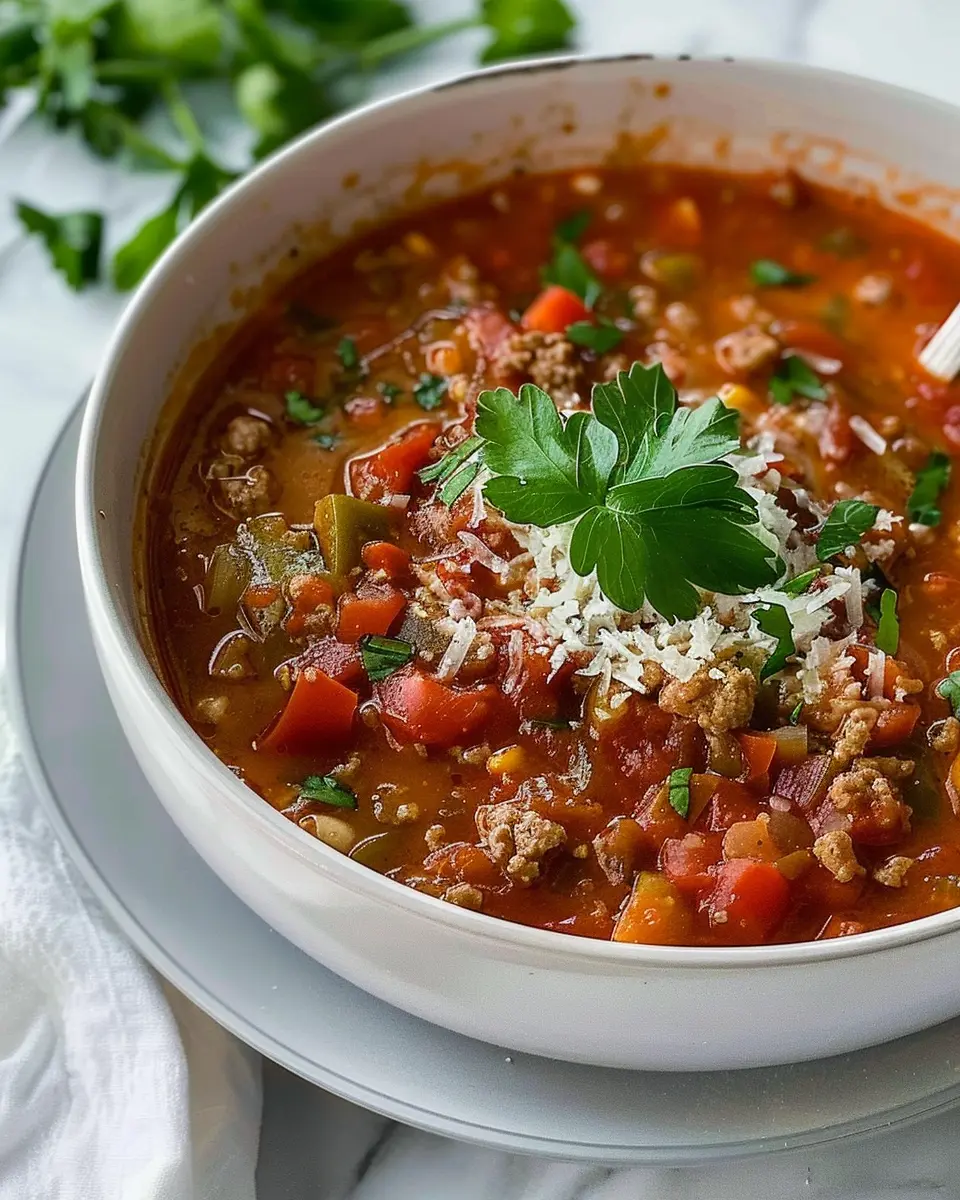 PrintHigh Protein Stuffed Pepper Soup: Easy Comfort Food Delight