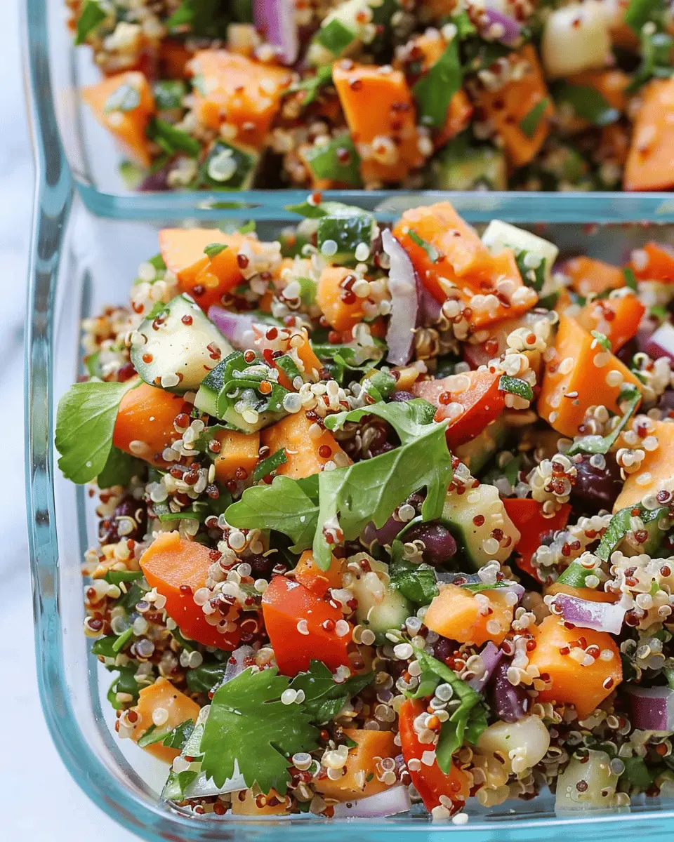 When stored correctly in an airtight container, your Loaded Quinoa and Sweet Potato Salad can last about 3 to 5 days in the fridge. However, for the freshest taste and texture, try to enjoy it within the first 3 days. As time passes, some ingredients may lose their crunch, especially any nuts or seeds you’ve added. A little tip: if you’re planning to save some for later, consider keeping those crunchy elements separate until you’re ready to eat.