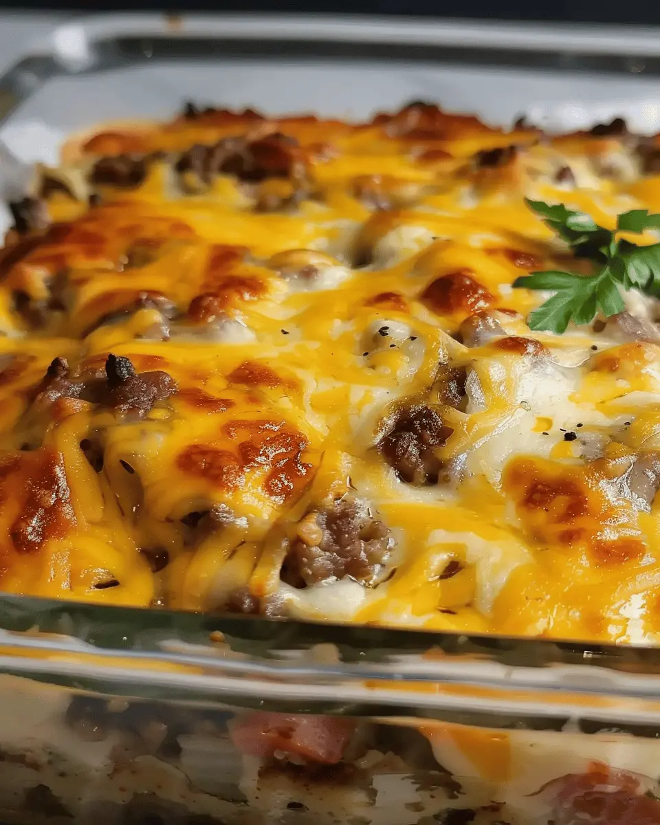 A delicious low-carb dish that combines the flavors of a bacon cheeseburger in a convenient casserole form.