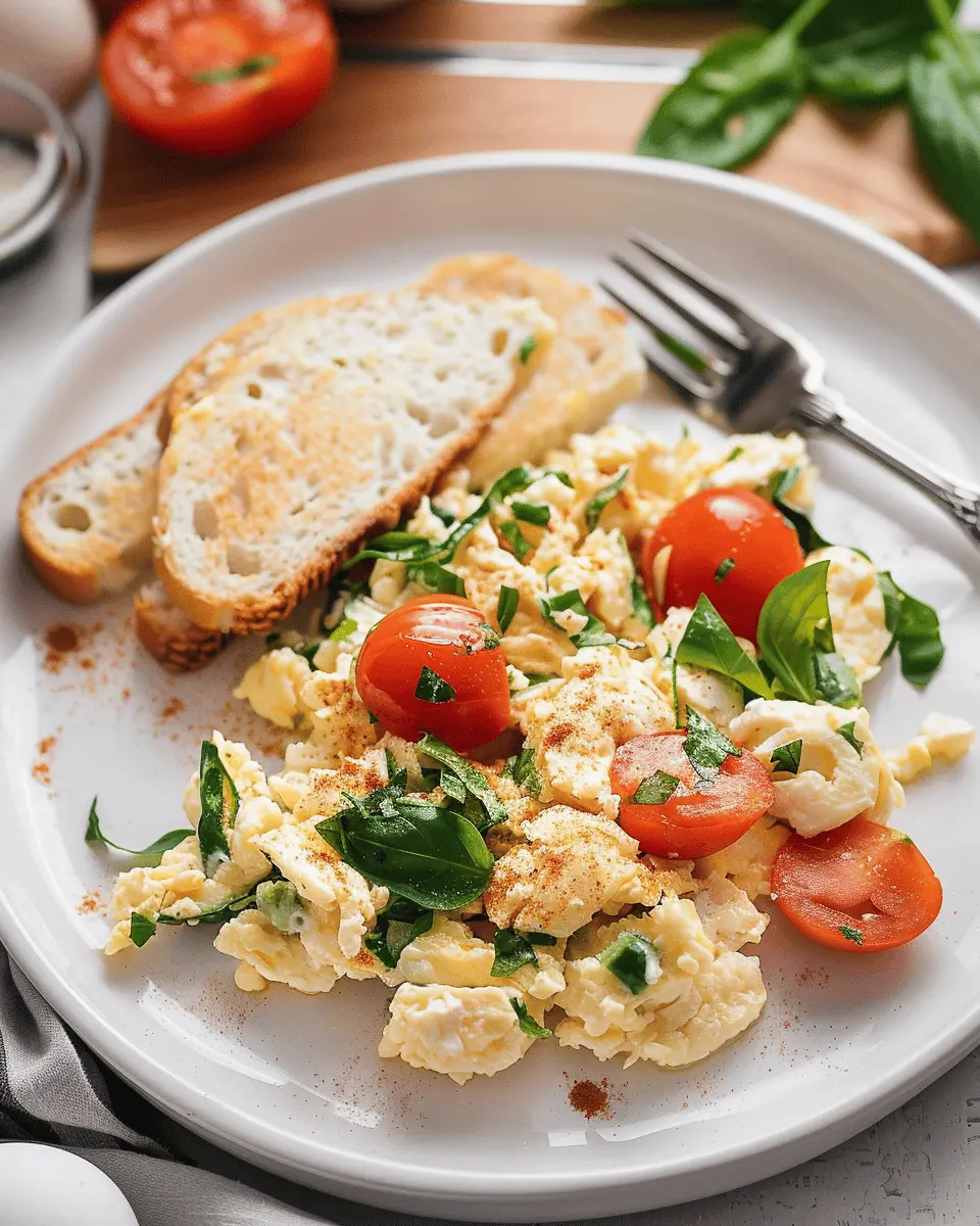 Cook Over Low Heat: Gentle cooking helps keep your egg whites fluffy and prevents overcooking. Medium to low heat ensures a tender scramble and preserves proteins.