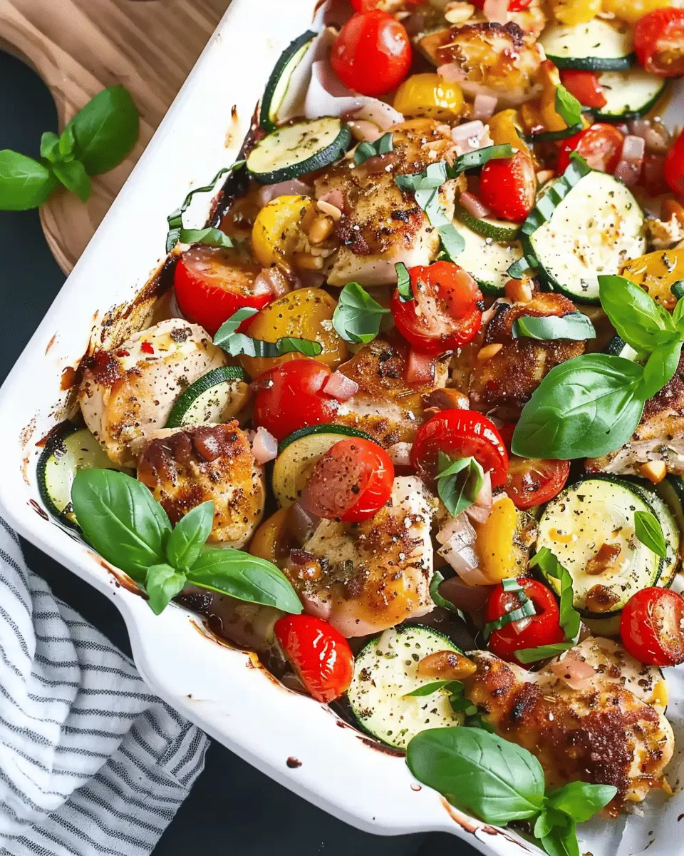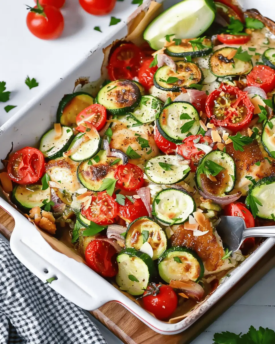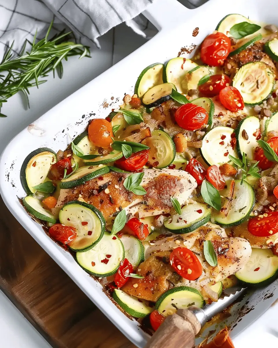 By following these simple steps, you’ll create a glorious Mediterranean Chicken Zucchini Bake that doesn’t just taste good but is also a feast for the eyes. Enjoy your cooking journey!