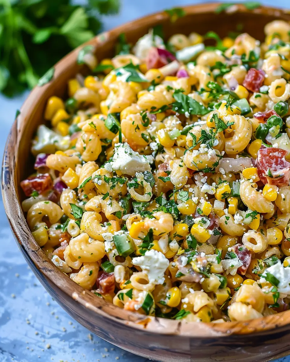 PrintMexican Street Corn Pasta Salad: A Flavorful Twist with Turkey Bacon