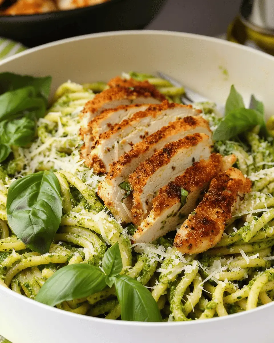 If you need a gluten-free version, don’t fret! There are wonderful pasta alternatives available now that taste fantastic. Brown rice pasta, quinoa pasta, or even chickpea pasta are great substitutes that ensure everyone can enjoy your Pesto Pasta with Crispy Parmesan Chicken without missing out.