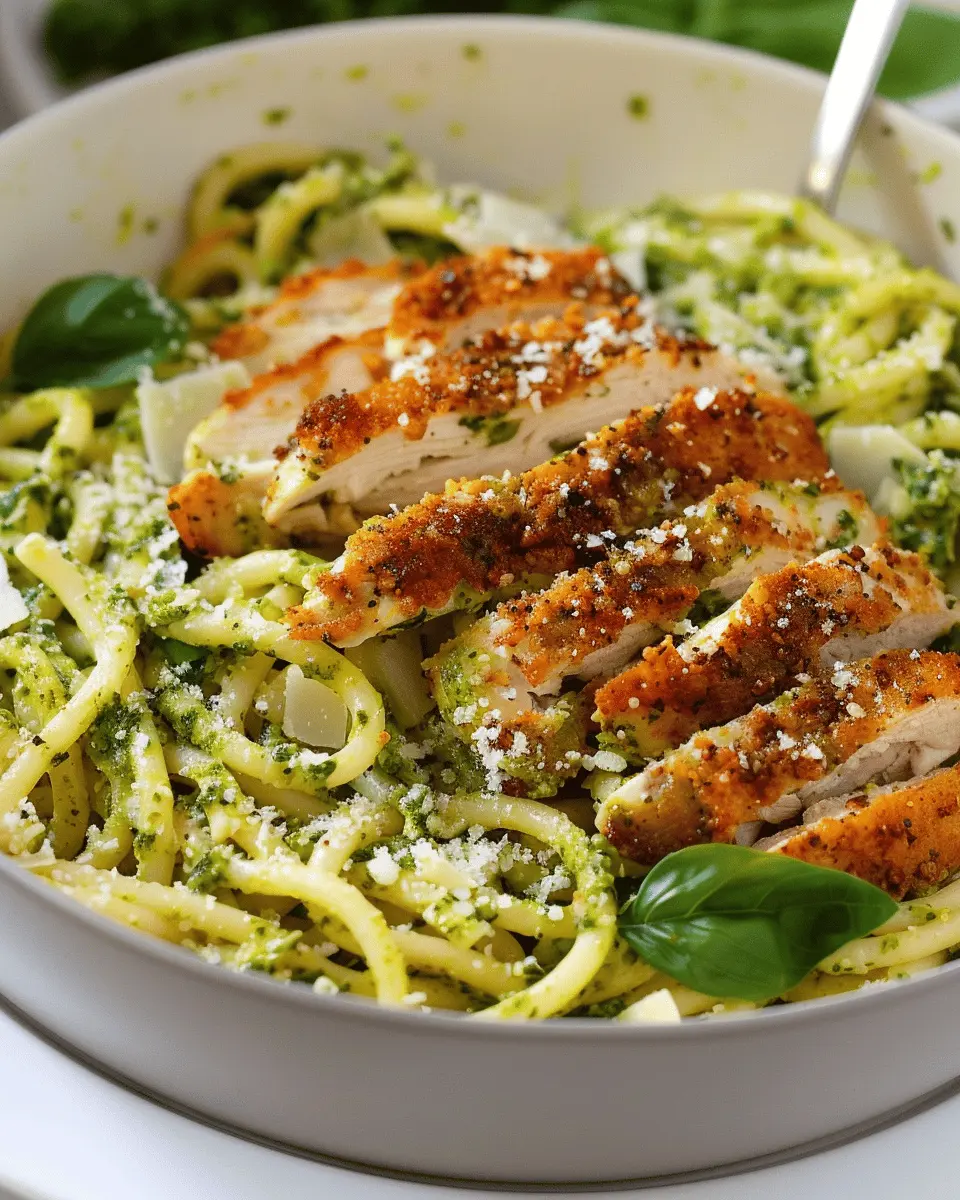 With these straightforward ingredients, you’re well on your way to serving up a delightful plate of Pesto Pasta with Crispy Parmesan Chicken. If you’re curious about variations or tips, check out sources like Serious Eats or Bon Appétit for inspiration. Happy cooking!