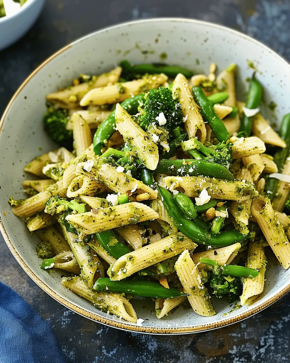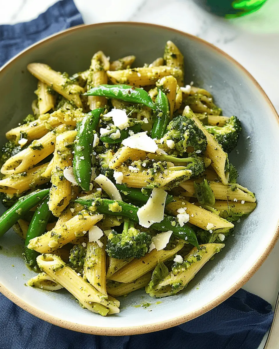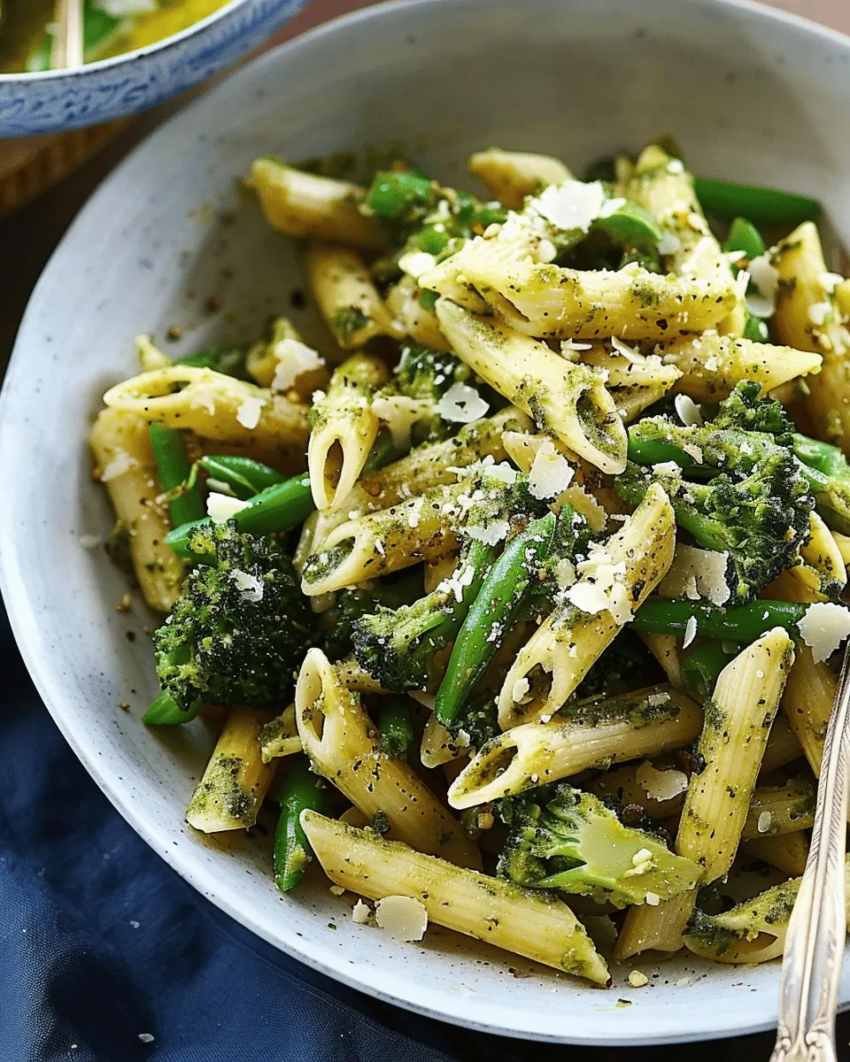 Pesto Penne Pasta with Broccoli and Green Beans is a quick and flavorful dish that’s perfect for busy weeknights.