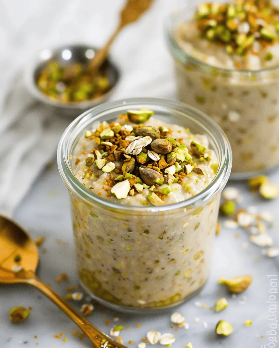 Ready to dive into this delightful recipe? Let’s get started on making your mornings brighter with flavorful pistachio overnight oats!