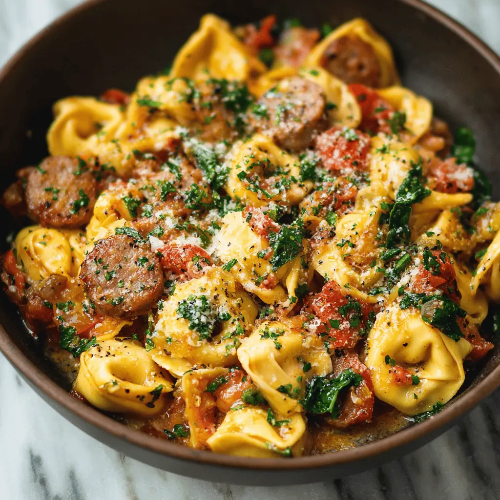 A delicious and easy pasta dish featuring sausage and tortellini, perfect for a weeknight dinner.