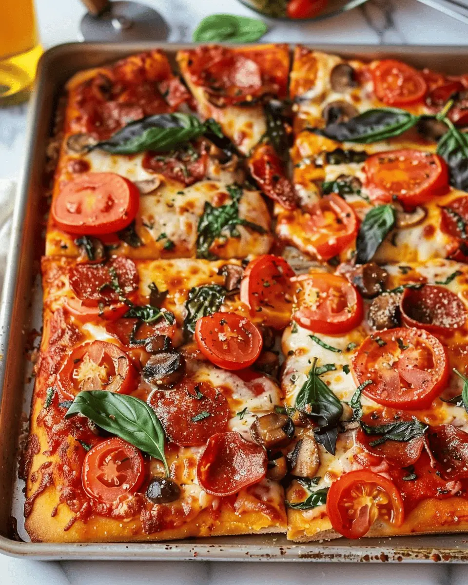 And there you have it! A delicious, homemade sheet pan pizza that’s sure to impress friends and family alike. Whether for a fun weeknight dinner or a casual get-together, this recipe is practical and satisfying. Don’t forget to share your favorite toppings or secret tips in the comments below! Happy pizza-making!
