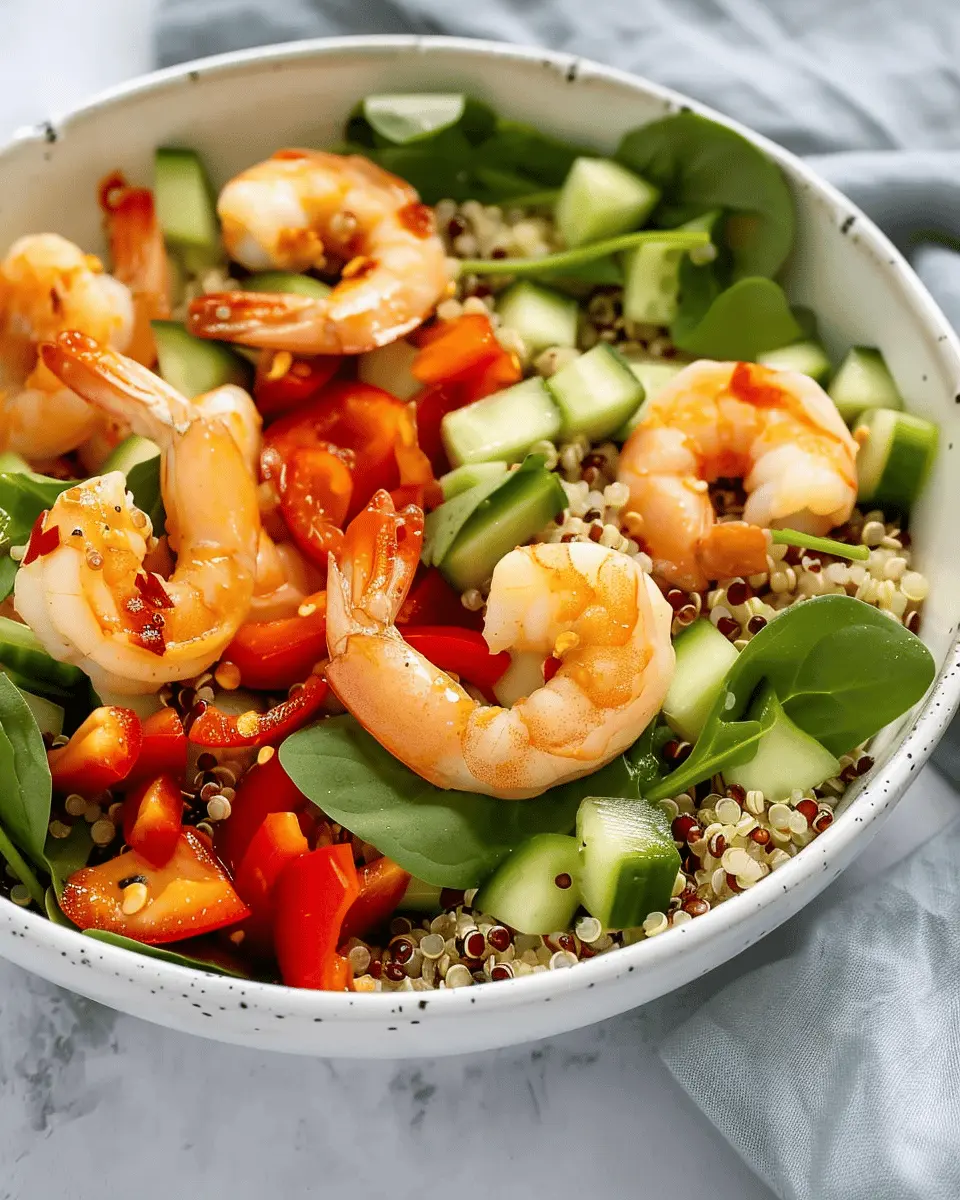 Absolutely! The shrimp and quinoa power salad is perfect for meal prepping. You can cook the quinoa and shrimp ahead of time and store them separately in the refrigerator. Assemble the salad just before you’re ready to eat to keep the ingredients fresh and vibrant. If you plan to enjoy it later in the week, consider using sturdy vegetables like bell peppers and cucumbers that hold up well in the fridge.