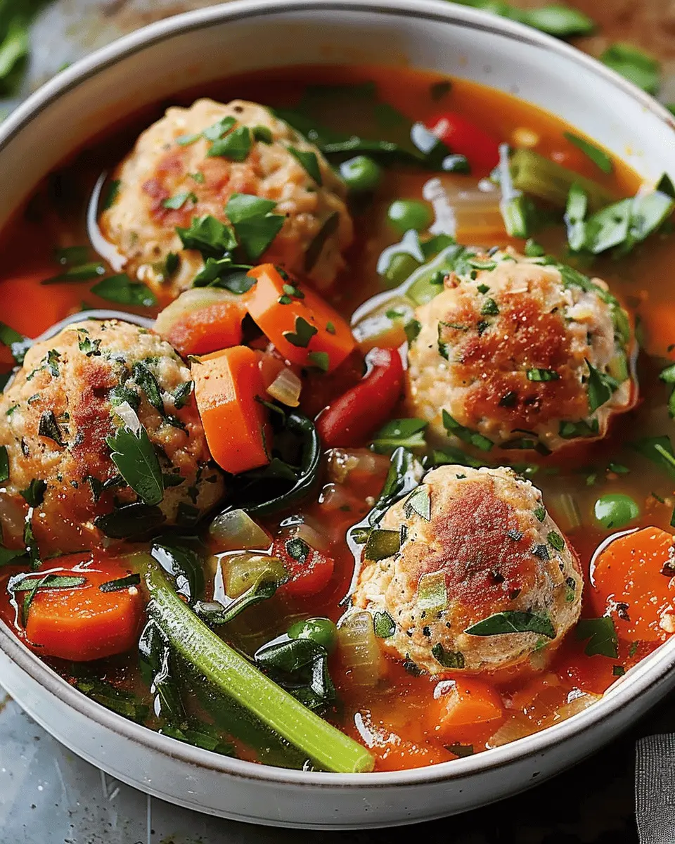 Chicken, especially the lean ground chicken used for meatballs, brings a wealth of health benefits to the table. Rich in protein and low in fat, it supports muscle health and keeps you feeling full longer. The assortment of vegetables—like carrots, celery, and bell peppers—contributes not only to the flavor but also to a variety of vitamins and minerals. According to the Centers for Disease Control and Prevention (CDC), incorporating vegetables into your meals can help reduce the risk of chronic diseases and improve overall health.