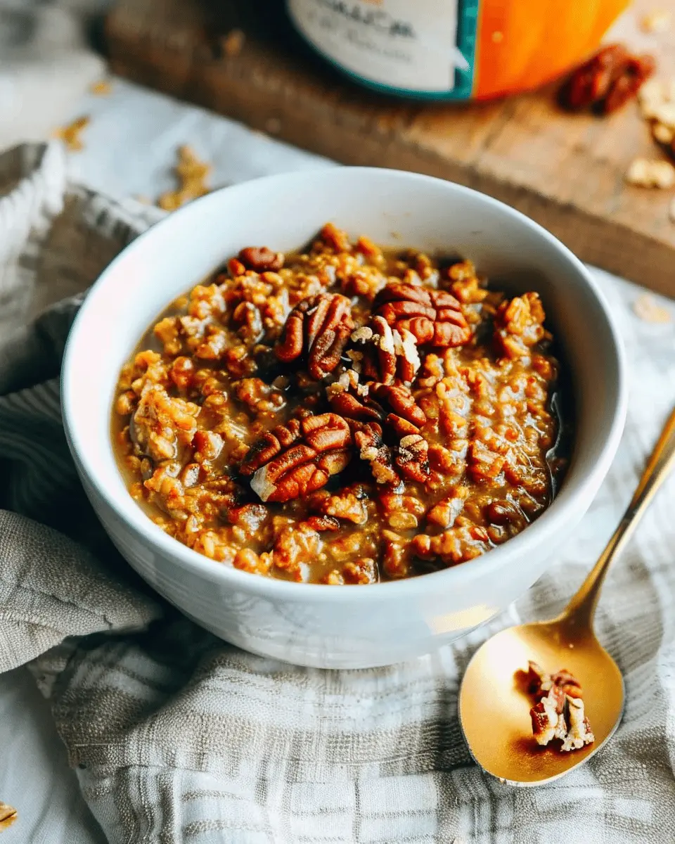 This recipe is not just easy; it’s also versatile. You can prepare it in bulk and enjoy it throughout the week for quick breakfasts or brunch gatherings with friends. Whether you’re a pumpkin enthusiast or just curious to try something new, this oatmeal is sure to become a seasonal staple in your kitchen. Dive into this recipe, and transform everyday mornings into something exceptional!