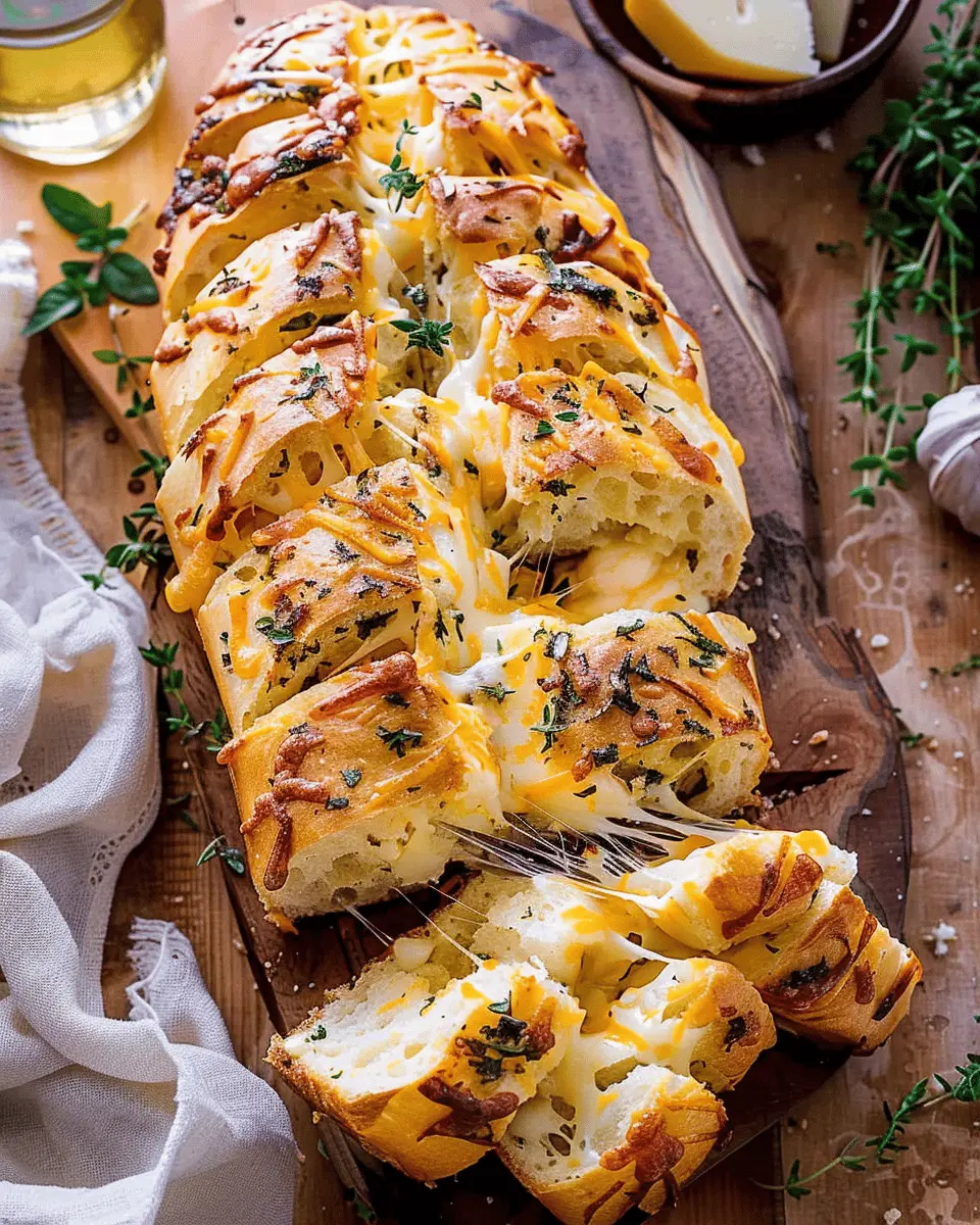 What’s more irresistible than the sound of pulling apart a warm, cheesy bread loaf? This is not just a side dish; it’s a meal on its own. Perfect for pairing with soups or salads, or served warm with a spread of garlic butter, this bread can elevate any ordinary weekday dinner into something special.