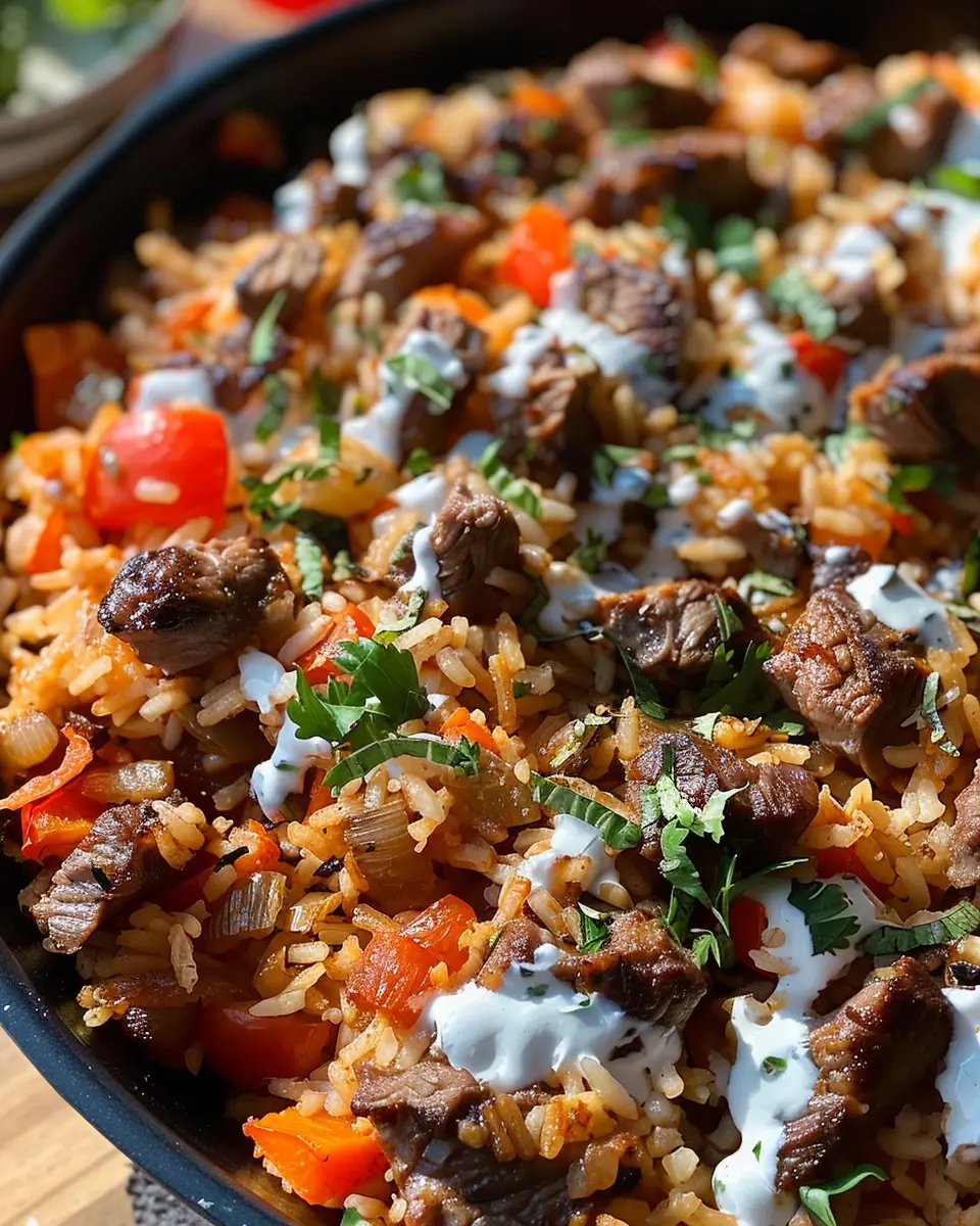 PrintSteak Queso Rice: A Juicy Twist on Comfort Food Delights