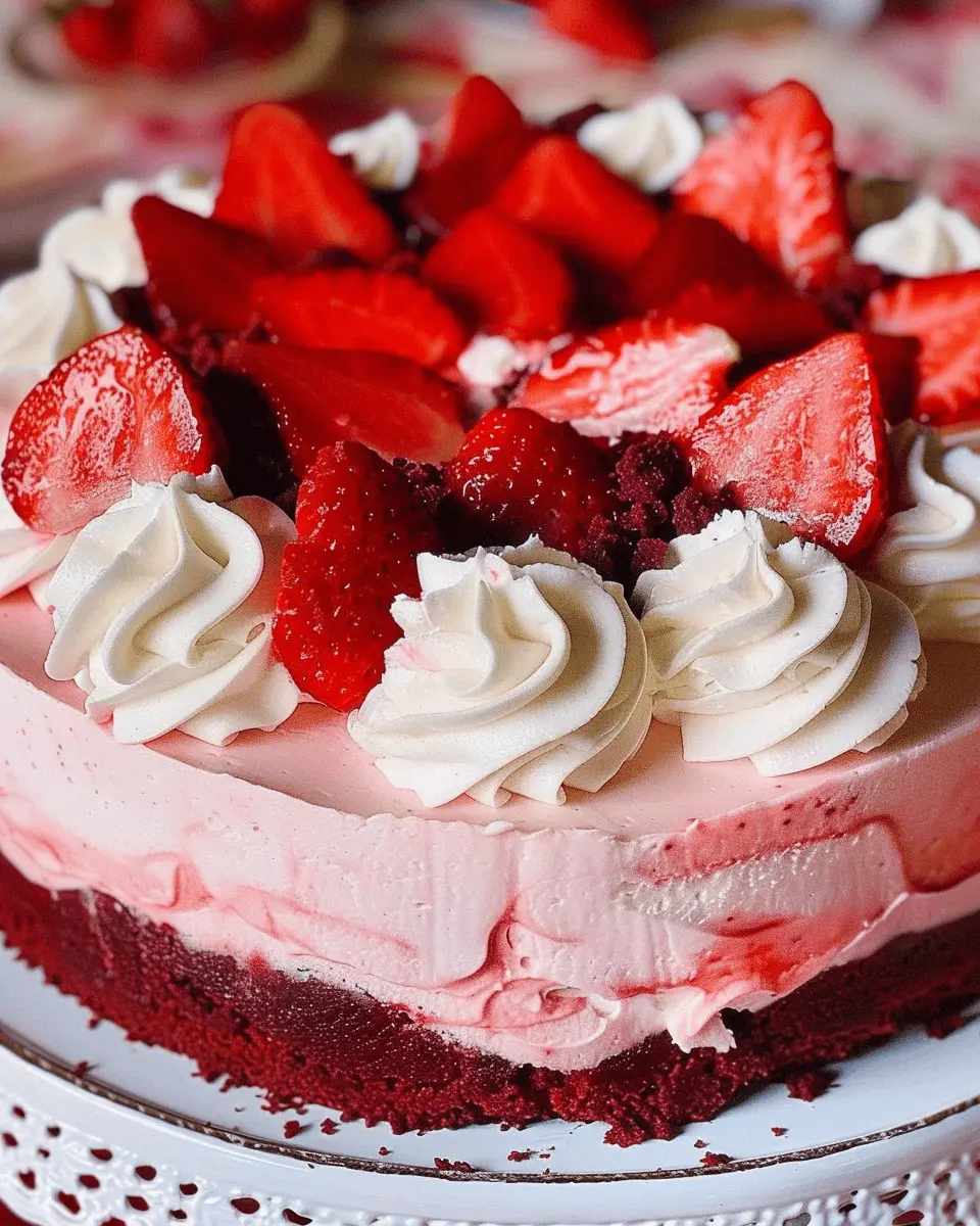 PrintStrawberry Red Velvet Cheesecake Recipe: A Decadent Treat for All