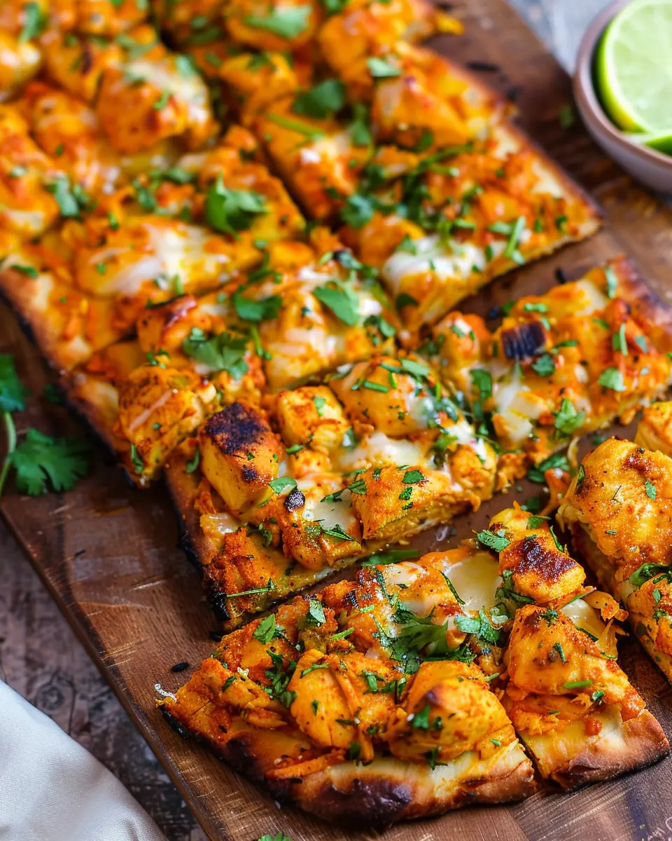A unique and delicious twist on classic garlic bread, featuring the bold flavors of tandoori chicken.