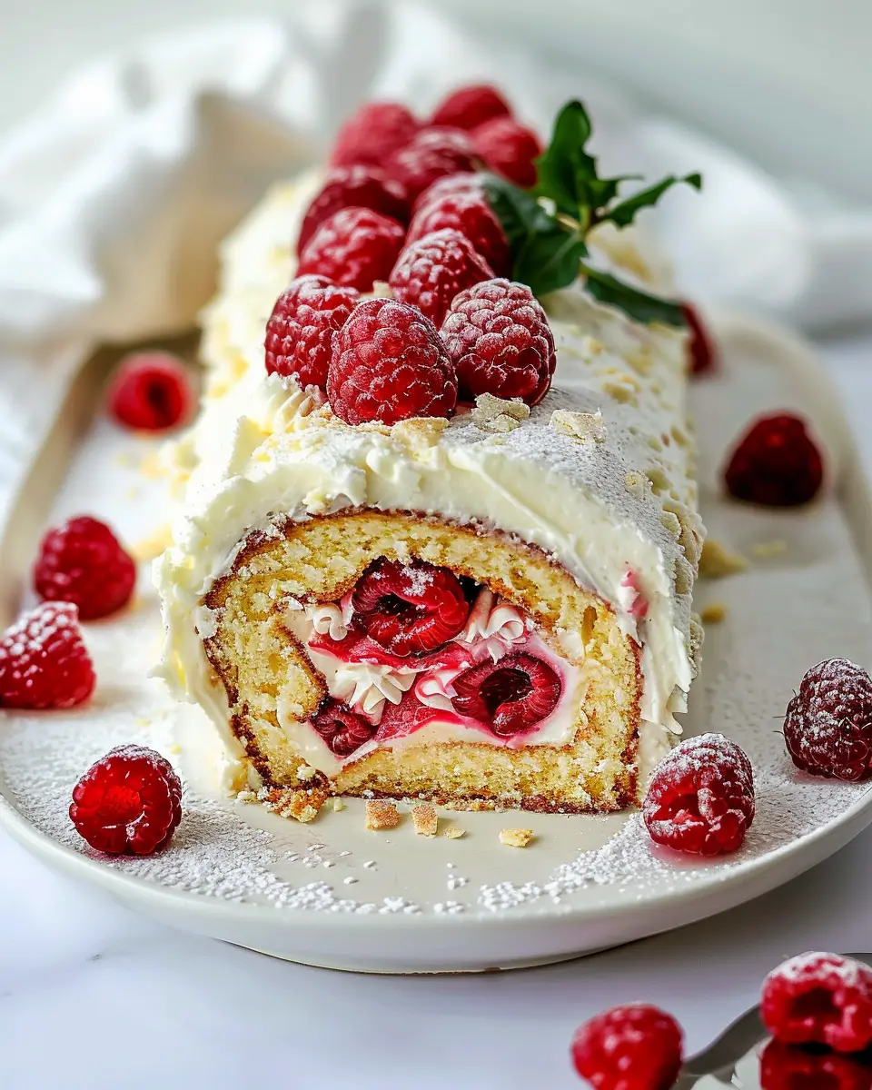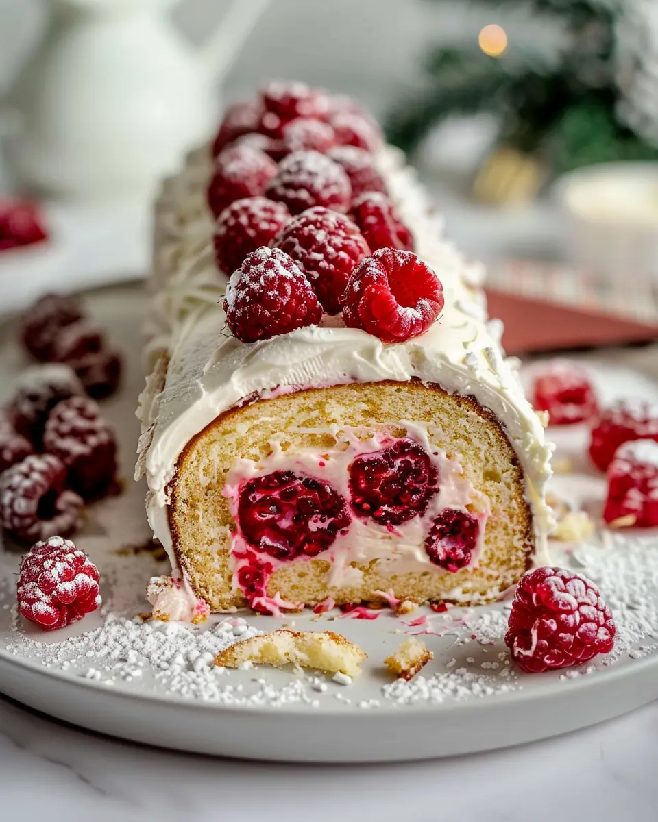 Keywords: Vanilla Raspberry Yule Log Cake, Holiday Desserts, Festive Treats