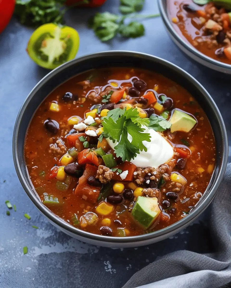 To elevate your vegetarian taco soup to the next level, consider adding fresh herbs right before serving. Ingredients like cilantro, parsley, and green onions provide a bright, fresh kick that complements the spices beautifully. Not only do fresh herbs enhance flavor, but they also add a pop of color. Feel free to mix and match – ever tried adding some fresh lime juice? It’s a game-changer!