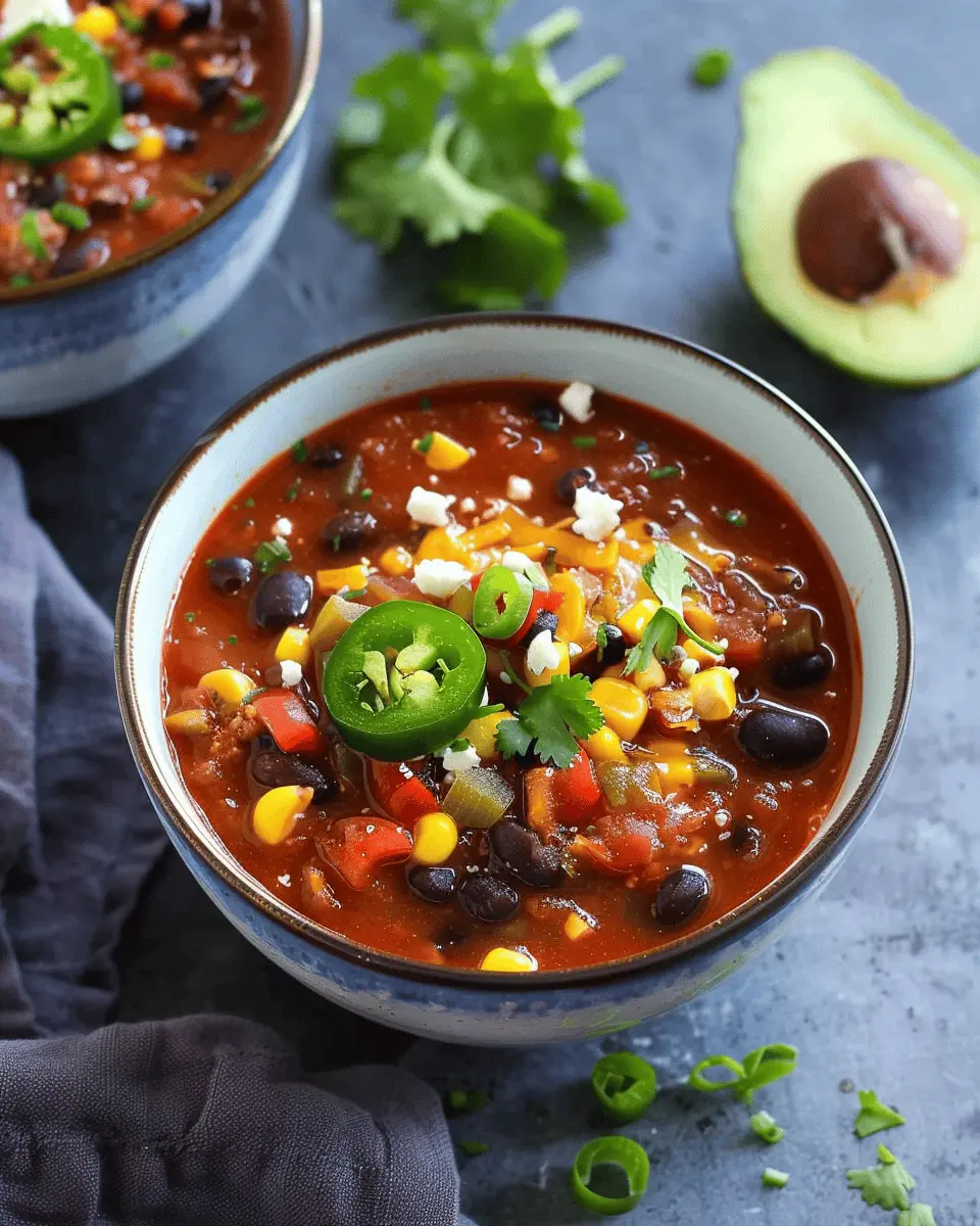 A delicious and hearty vegetarian taco soup that brings comfort and flavor to your table. Perfect for a cozy dinner!